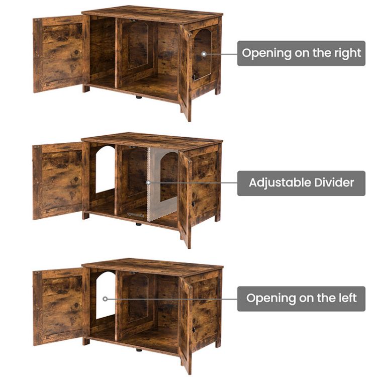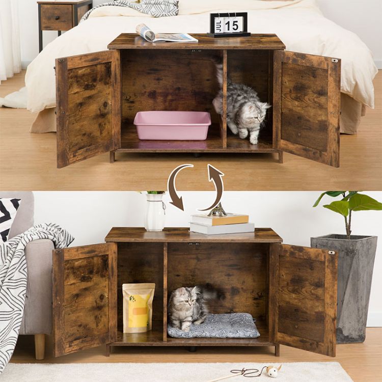 | Bullet Point 2 | Een ander item: de brede top: kattenkast met een groot tafelblad, perfect voor tijdschriften, lampen, kopjes, enz. Het is niet alleen een kattenhuis, maar ook een opbergbank.Houd de kattenbak verborgen en vrij van geuren, terwijl u profiteert van extra opslagruimte! |
