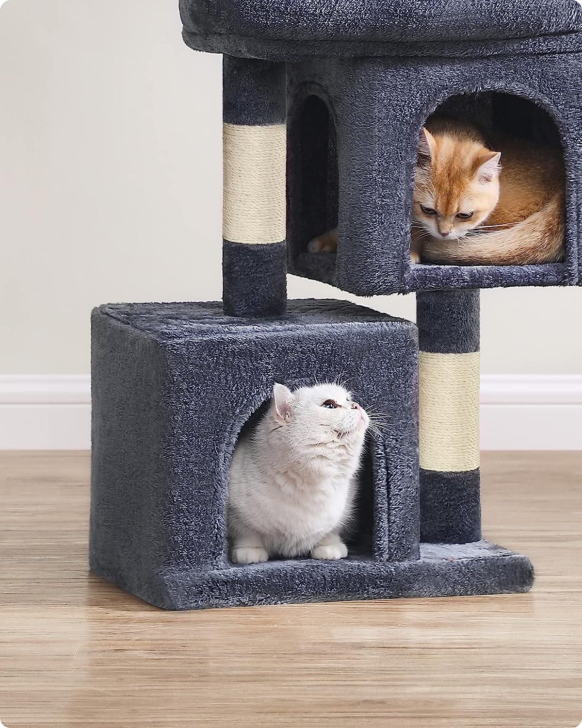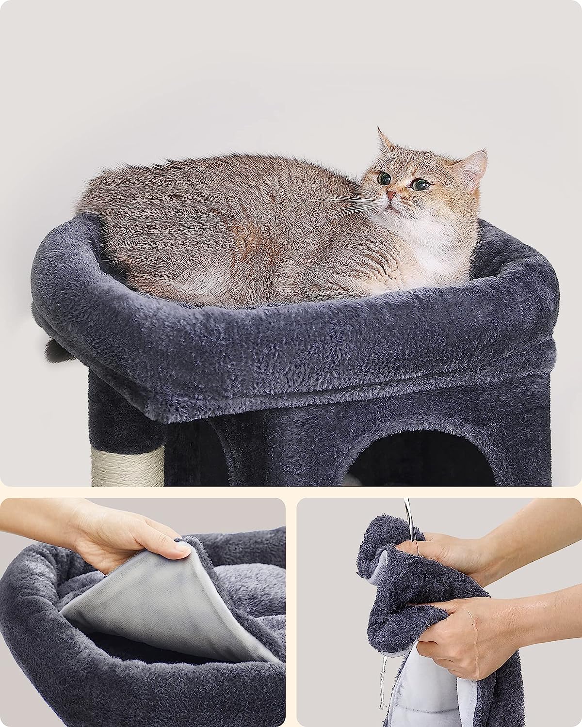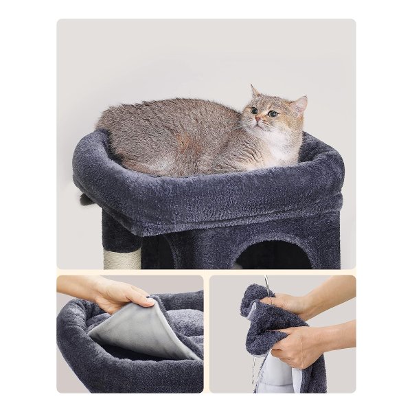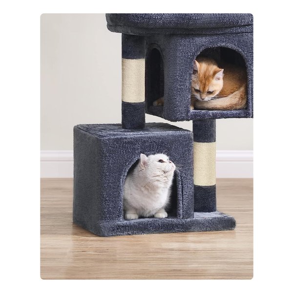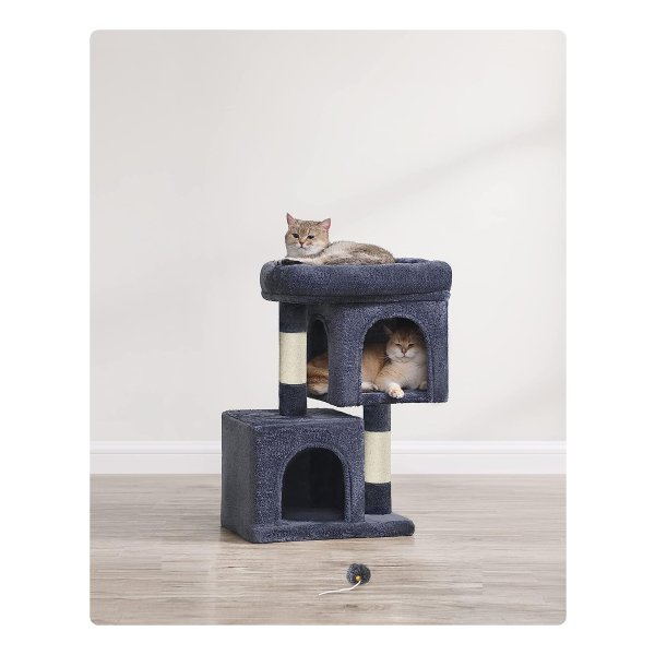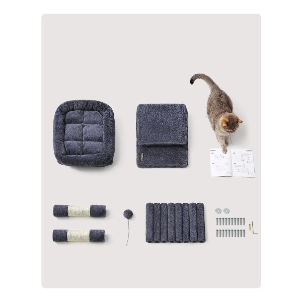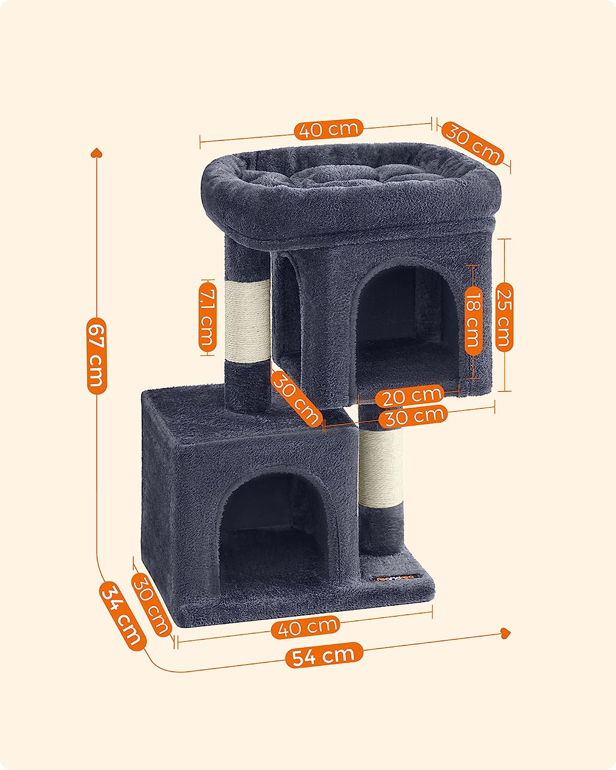 Deze 67 cm kleine kattenboom is een perfecte plek voor kittens tot 3 kg om te spelen, te rusten en te ontspannen. Het heeft een groot platform waar je kat zich kan uitstrekken en een comfortabele plek heeft om te slapen. De kattenboom heeft ook een kattenhuis waar je kat zich kan verstoppen en veilig kan voelen. De kattenboom is gemaakt van stevig materiaal en is voorzien van sisalstammen waar je kat aan kan krabben en zich kan uitleven. De stammen zijn stevig genoeg om je kat te ondersteunen en te voorkomen dat hij of zij eraf valt. De kleur van de kattenboom is rookgrijs, wat een rustige en moderne uitstraling geeft. De kattenboom is eenvoudig te monteren en is een perfecte plek voor je kat om te spelen, te rusten en te ontspannen. Het is een geweldige manier om je kat te vermaken en tegelijkertijd een stijlvolle toevoeging aan je huis te maken. Productdetails: – Kleur: rookgrijs – Materiaal: spaanplaat, pluche, sisal – Afmetingen: 40 x 30 x 67 cm (L x B x H) – Gewicht: 6 kg Leveringsomvang: – 1 x kattenboom – 1 x accessoirepakket – 1 x anti-tipper – 1 x instructie