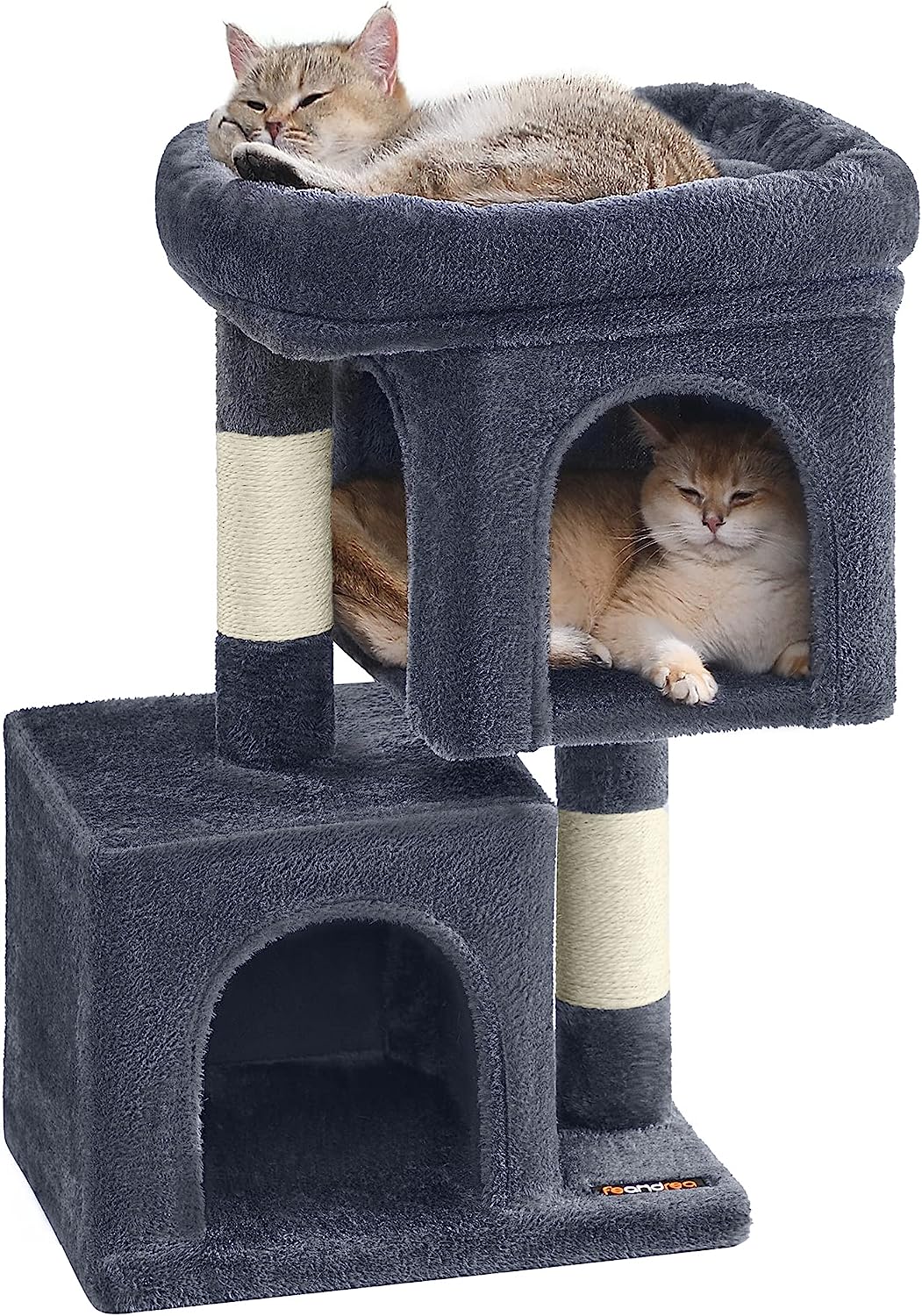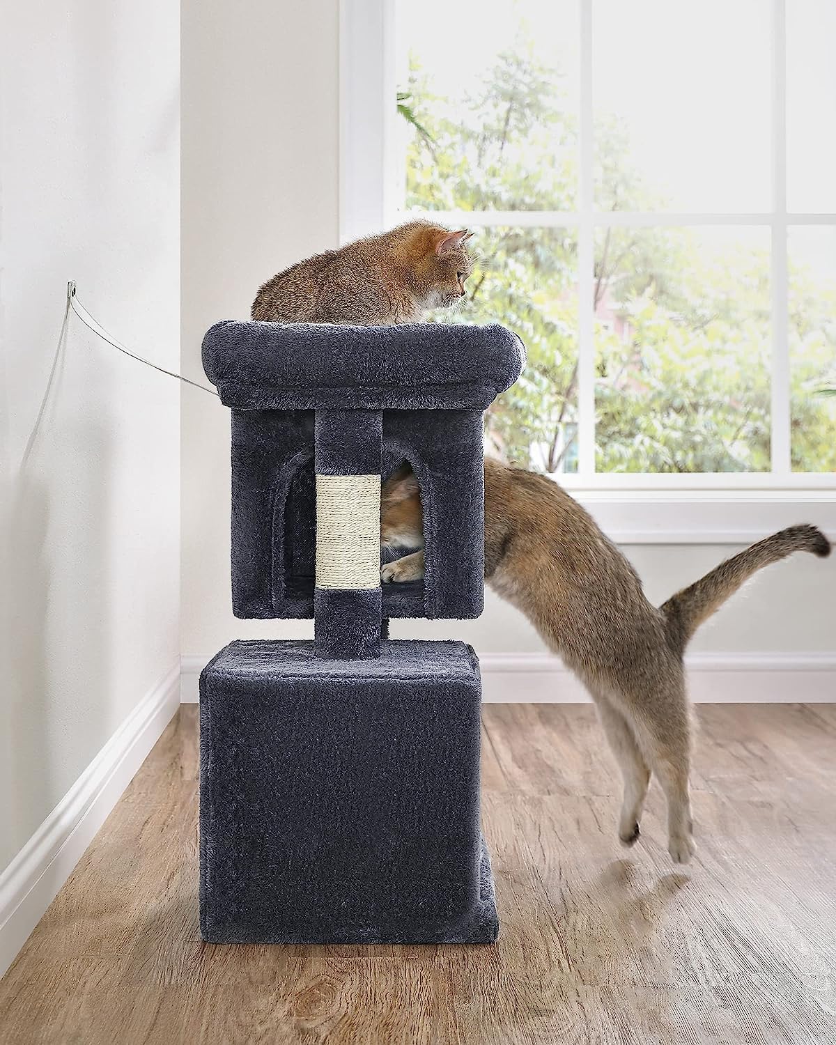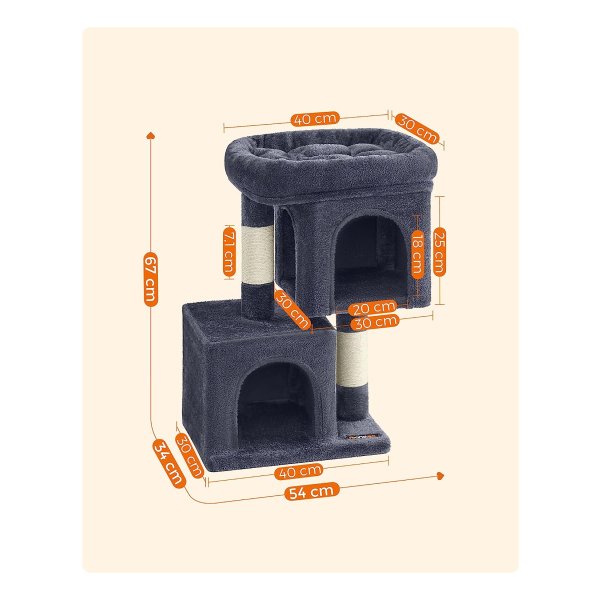 Klein Kattenboom – 67 Cm – Kattenhuis Voor Kittens Tot 3 Kg – Groot Platform – Sisalstammen – Rookgrijs
