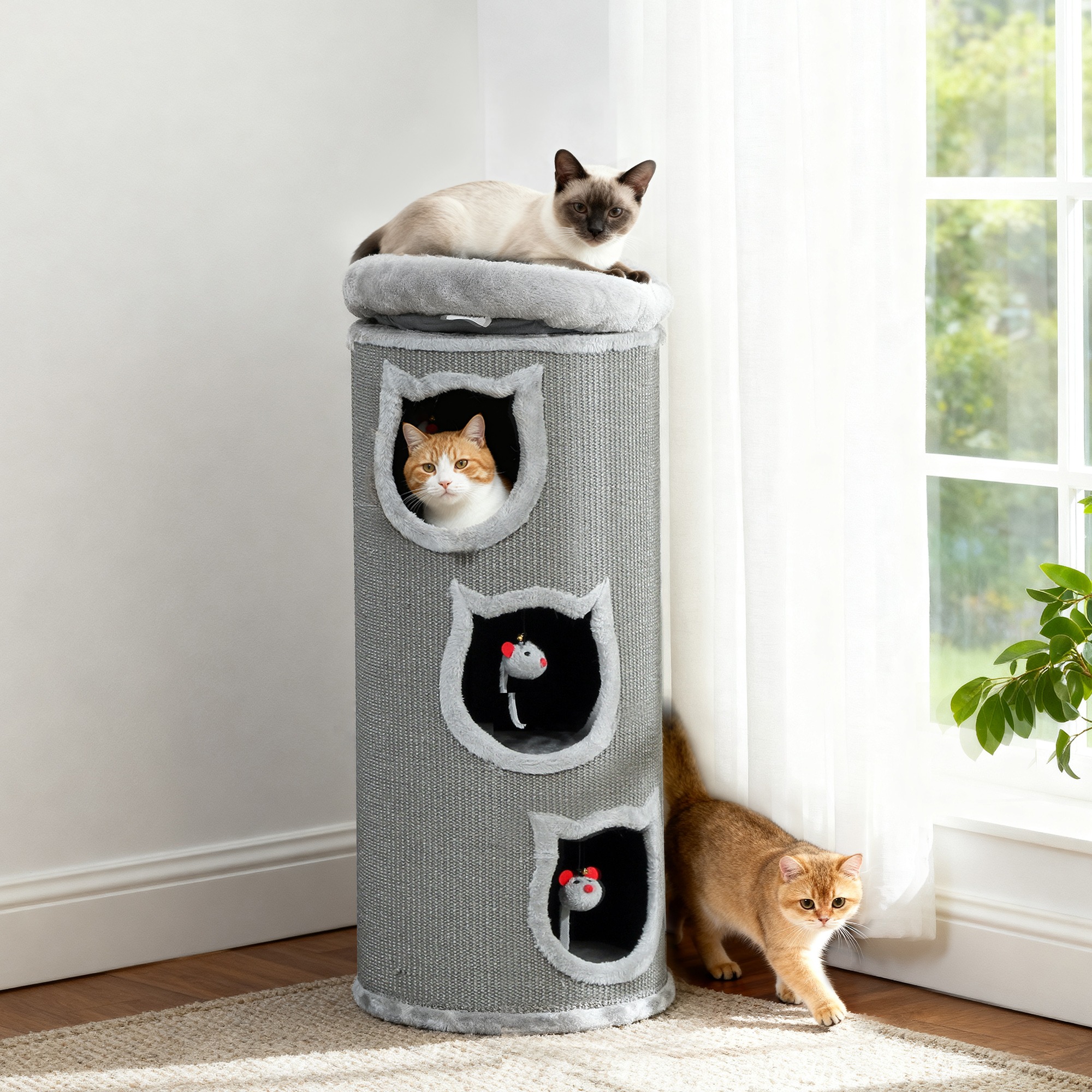 - ✔ Drie slaapgrotten van de kattenboom bieden gezellige schuilplaatsen