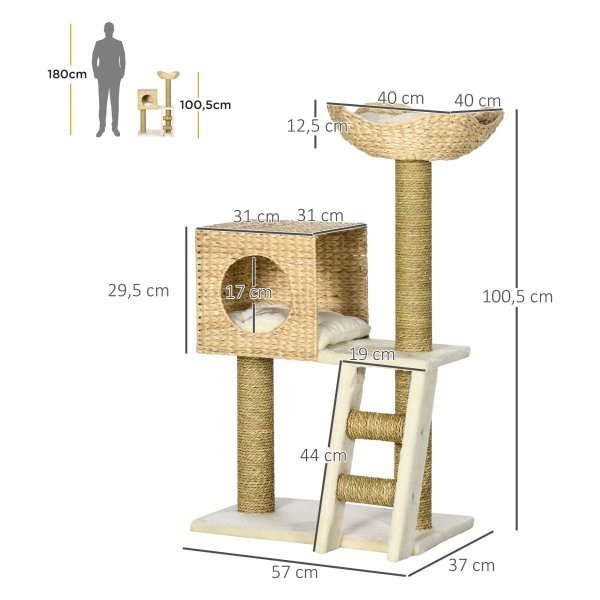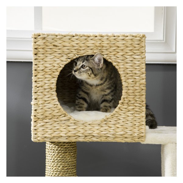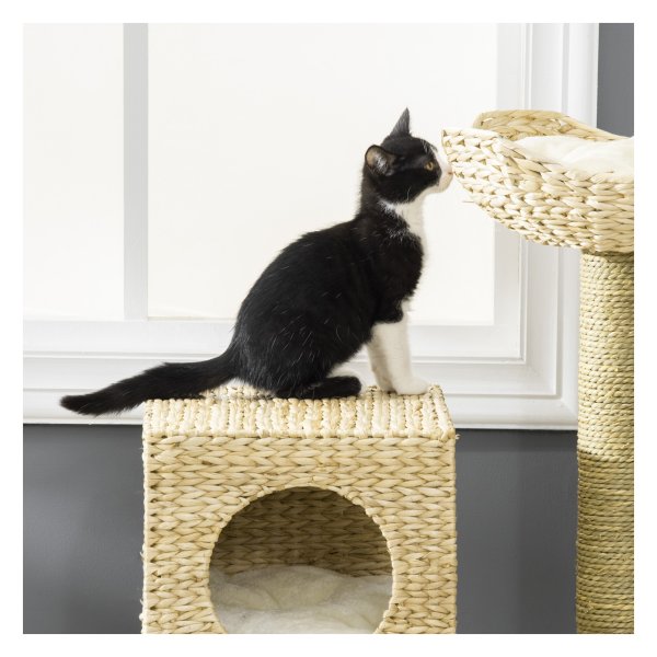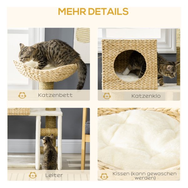 Bullet Point 1 | Het comfort en de ondersteuning in de PawHut Krabpaal komen voort uit de gezellige kattenhuis en bovenbed, de stimulerende sisal krabpalen, de duurzame spaanplaat structuur, de stijlvolle kleurtinten die naadloos in uw interieur passen, de verschillende klimniveaus en de wasbare kussens voor eenvoudig onderhoud en frisheid. |