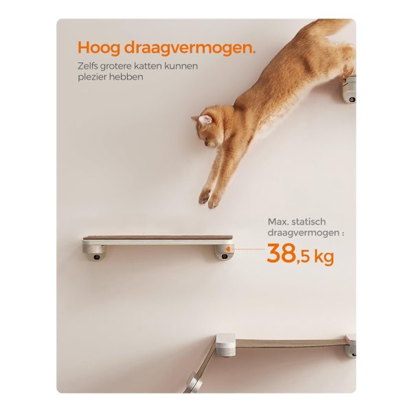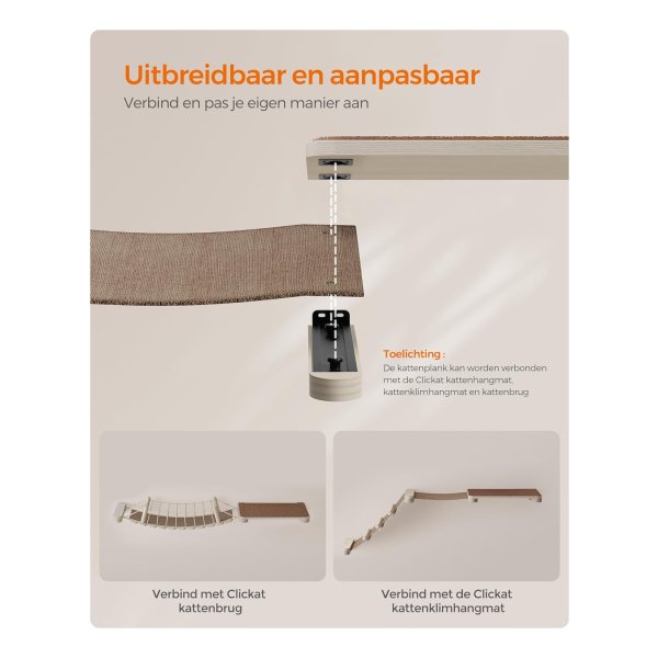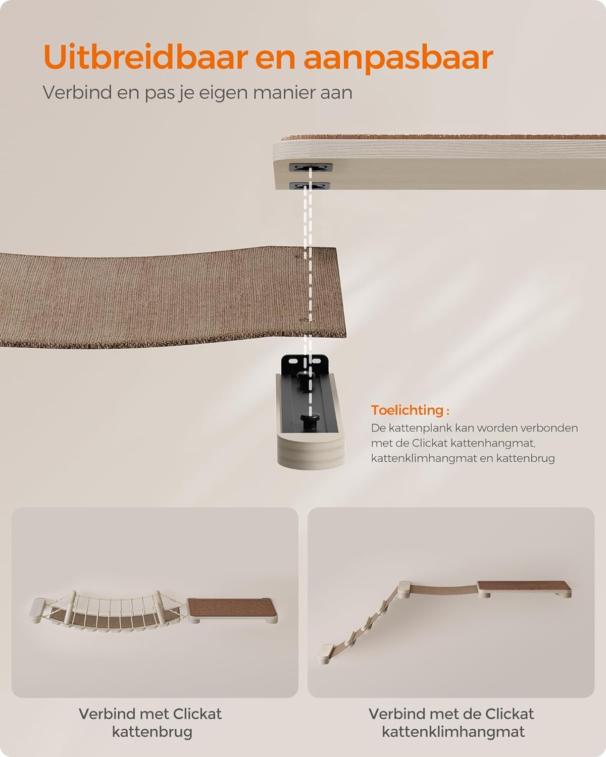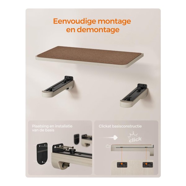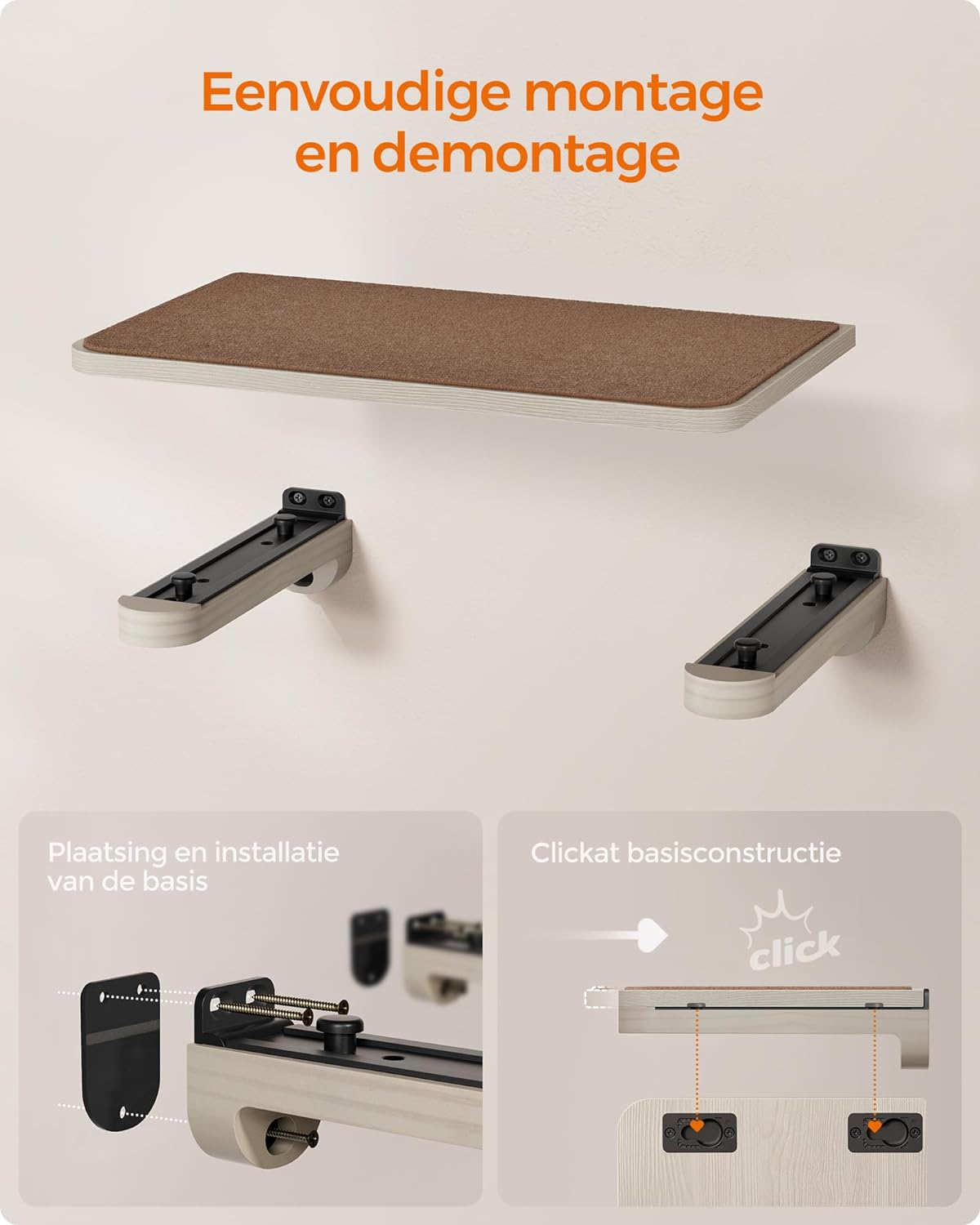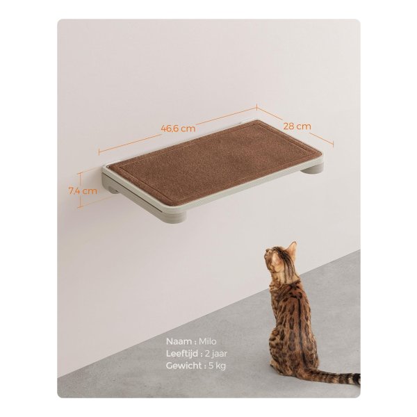 Kattenplank voor aan de muur, klimwand, kattenmeubel voor wandmontage, vilten pad, verwisselbaar, wasbaar, eenvoudige montage en demontage, havermoutbruin en koffiebruin