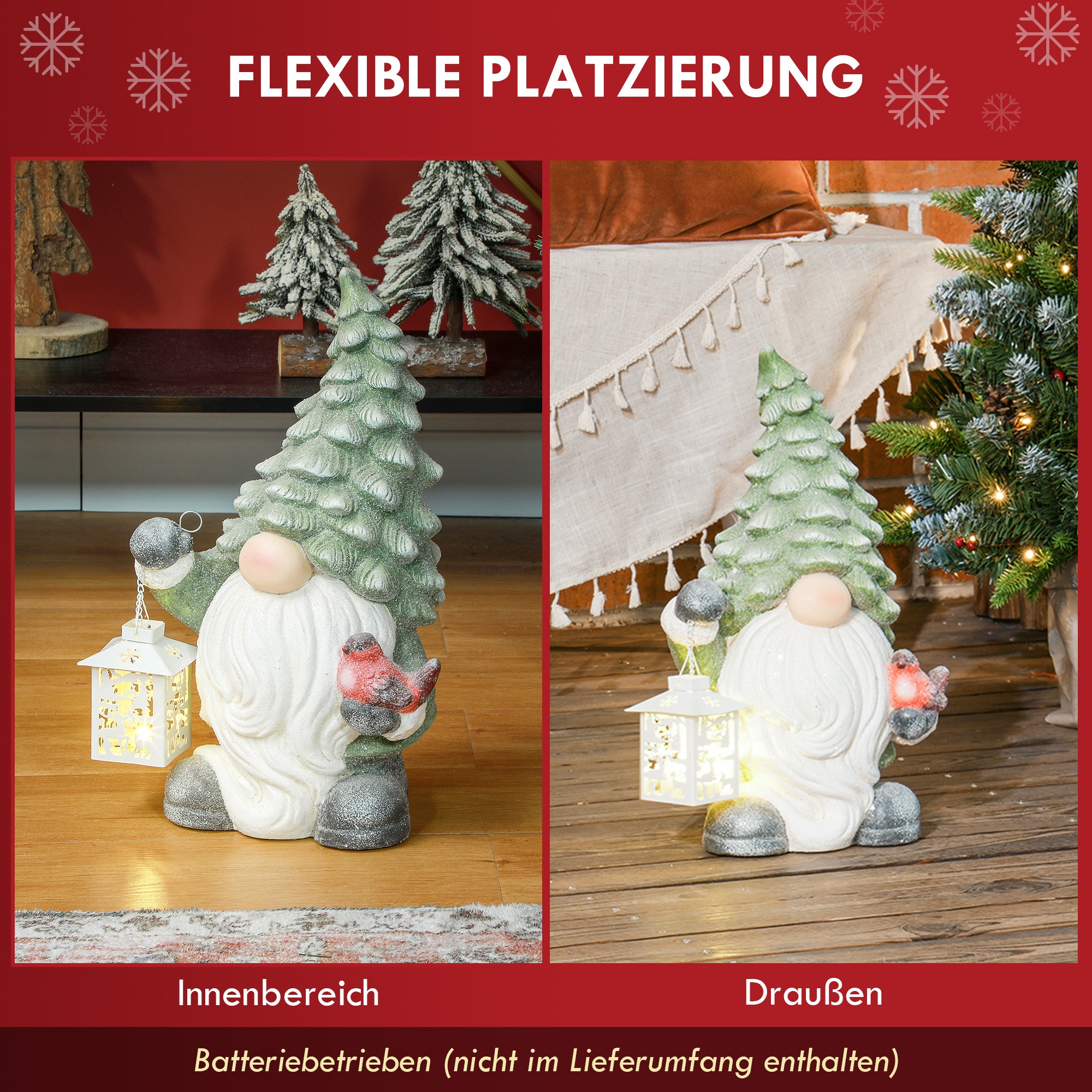 Betoverend kerstelf standbeeld met lantaarn en warmwitte LED-verlichting. Draadloos, veilig verpakt en perfect voor feestelijke charme in uw kerstdecoratie. 28 x 21 x 42 cm, 3.