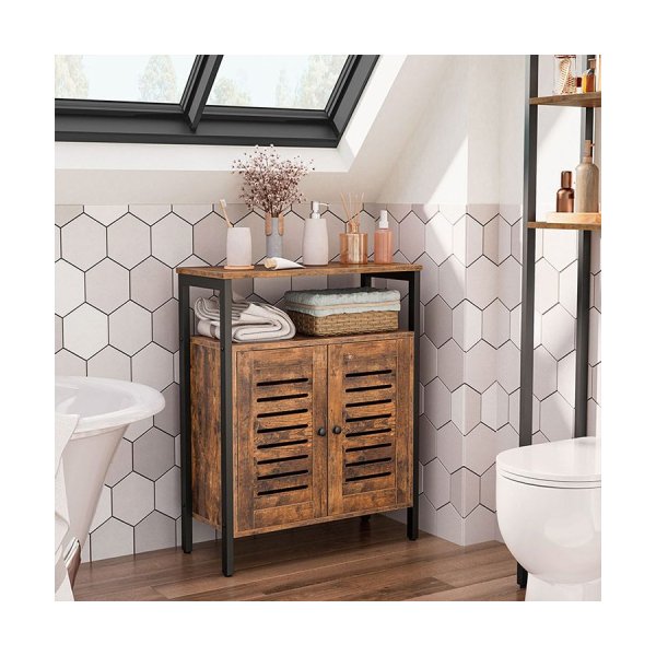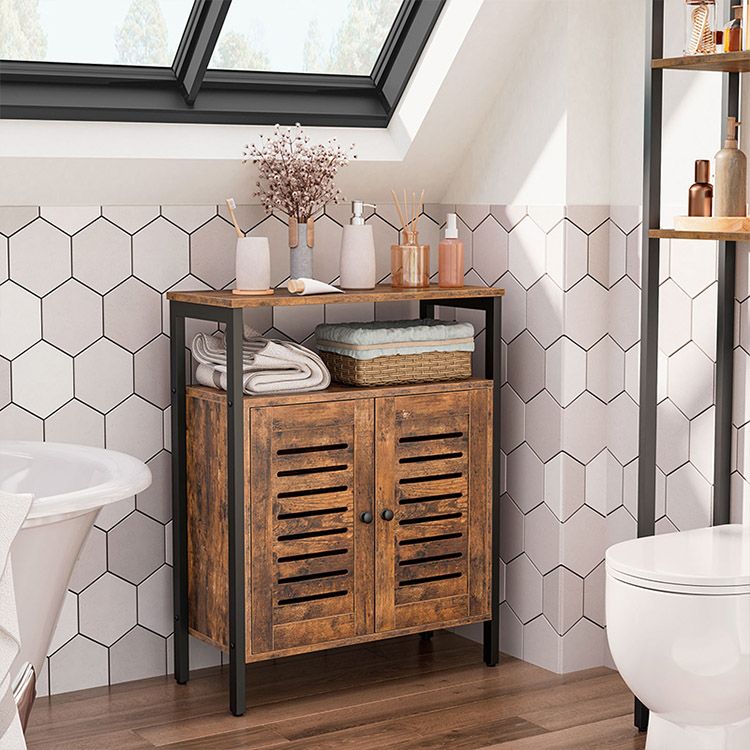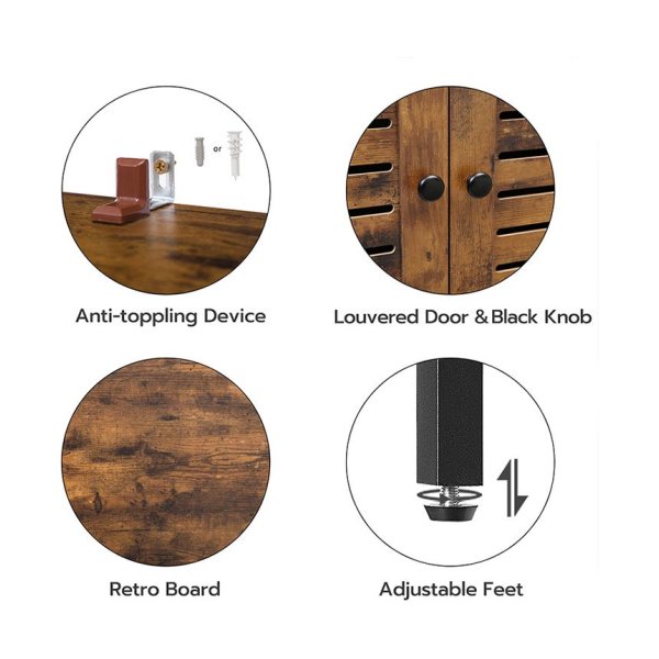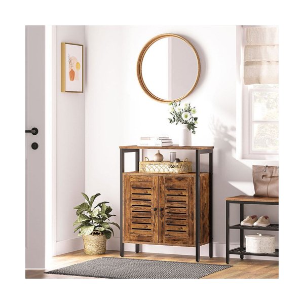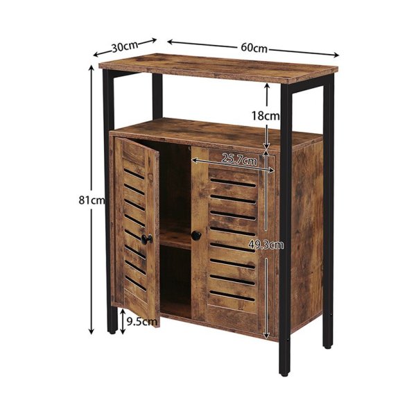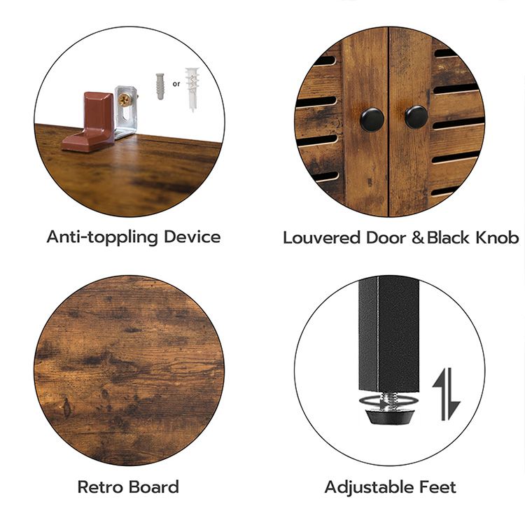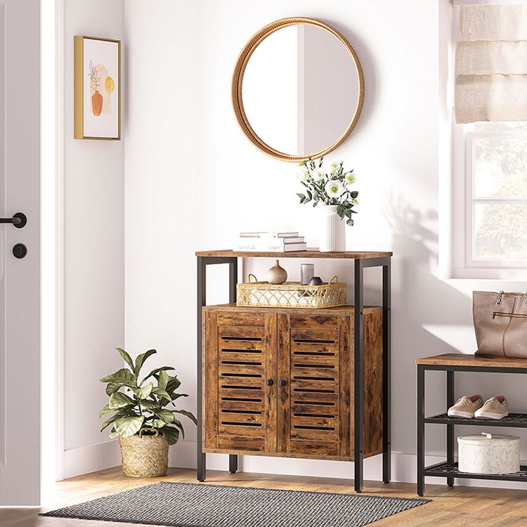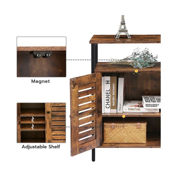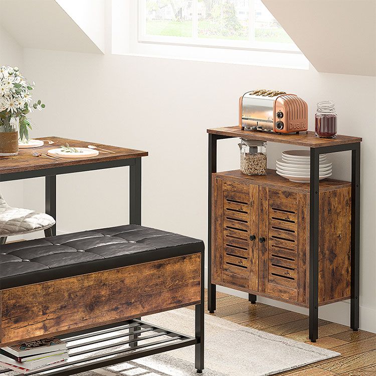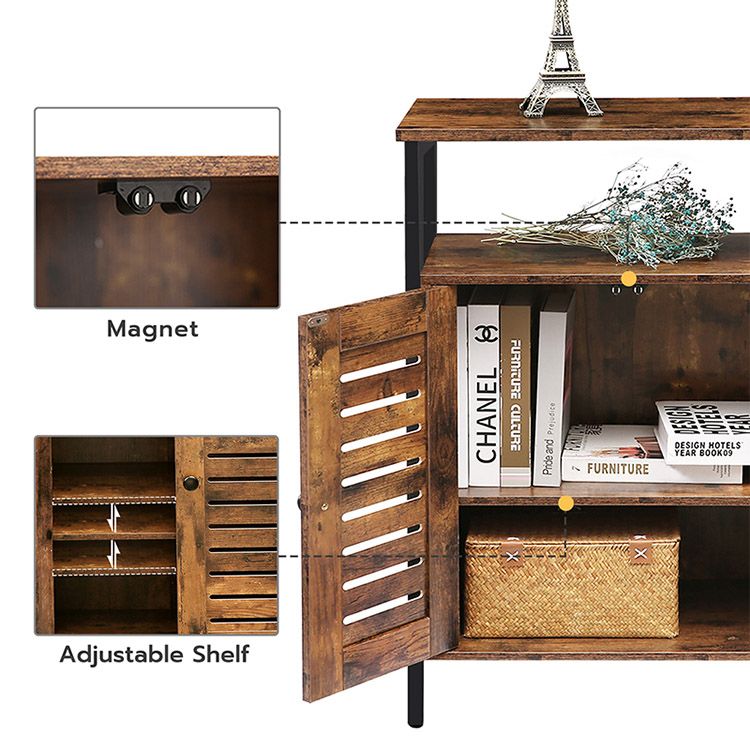 Keukenopslagkast, industriële zijkast met verborgen verstelbare plank en deur, staande kast, geschikt voor slaapkamer, woonkamer, studie, keuken, gang, rustiek bruin