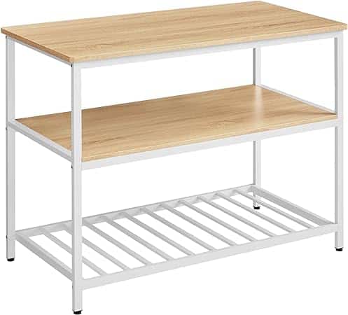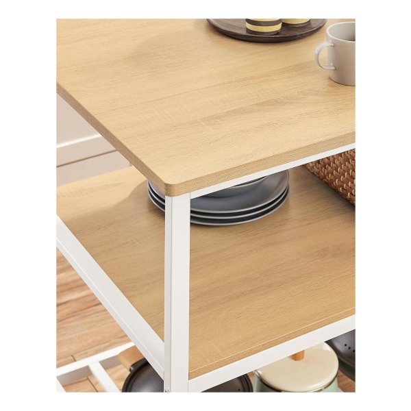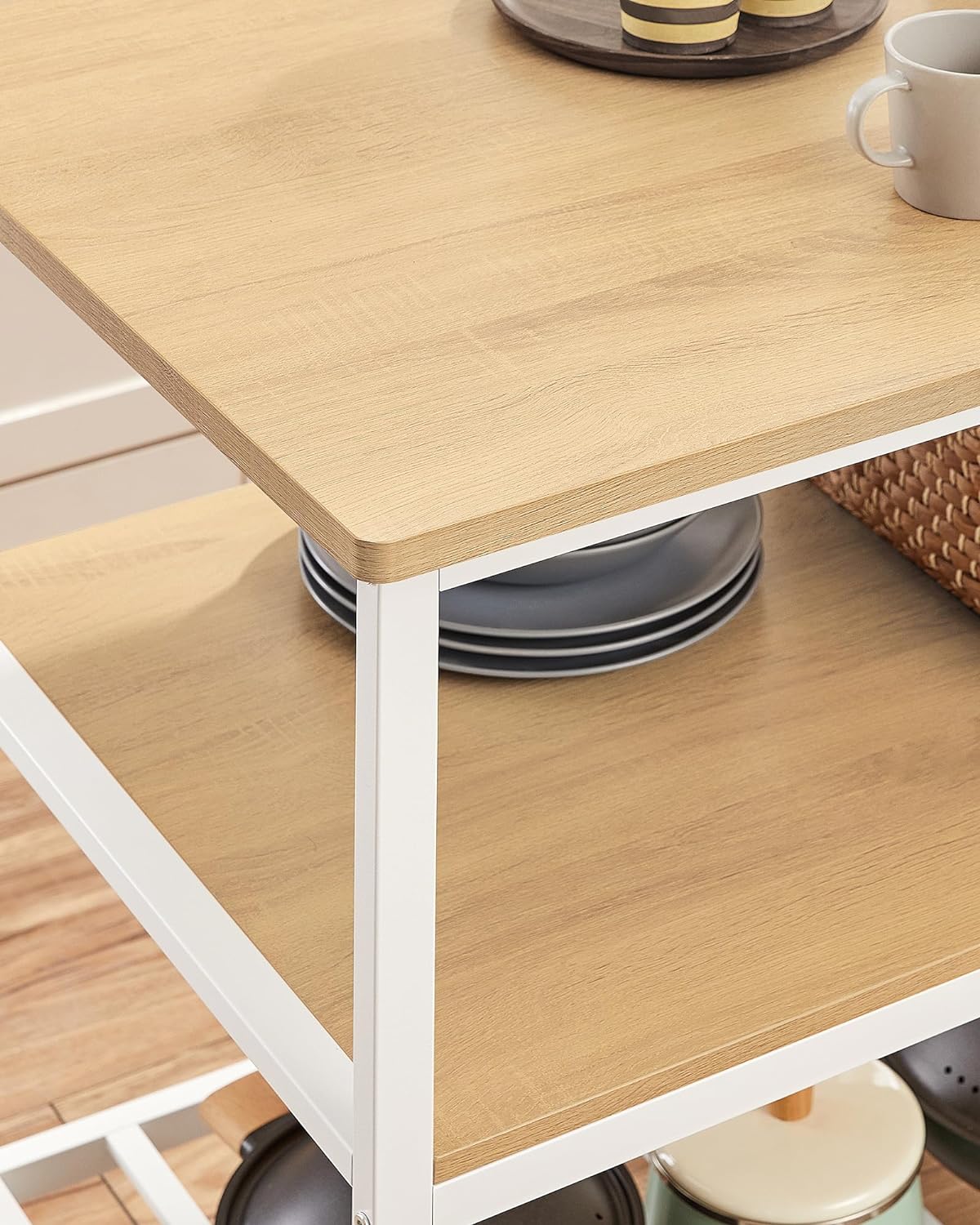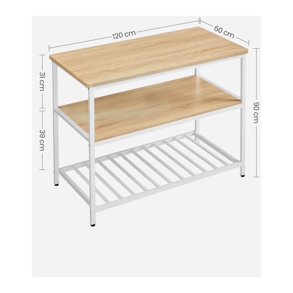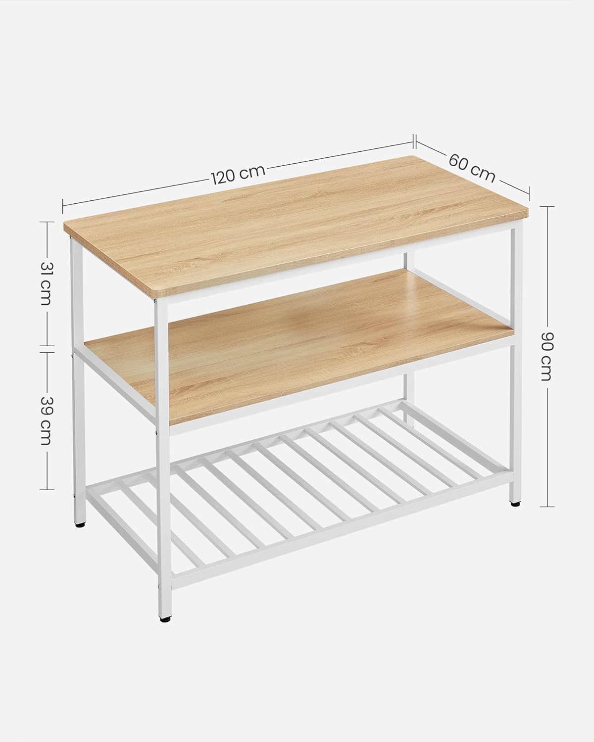 Keukenplank met groot werkblad, 3-stappen kruidenrek, stalen frame, 60 x 120 x 90 cm, modern, gemakkelijke montage, eiken wit