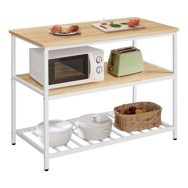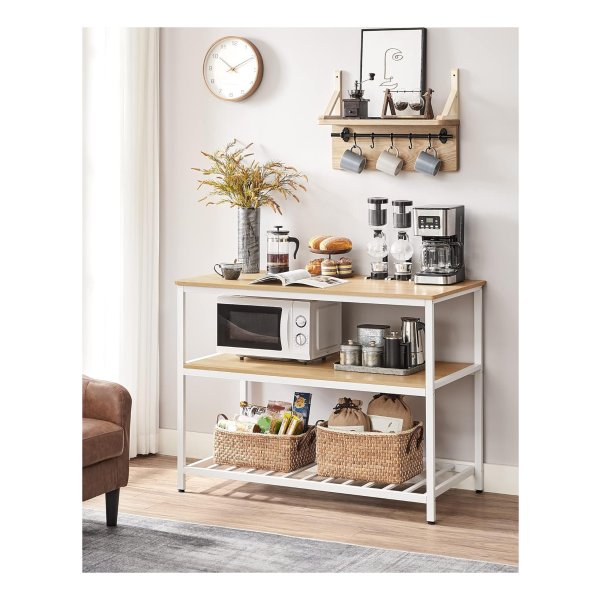 Bullet Point 2 | [3 -laags opslag] Plaats een bloemenvaas of theeset op de bovenste plank, keukengerei op de middelste plank en opbergdozen met bakvormen op de onderste plank – dit driedelige keukenrek is alles georganiseerd |