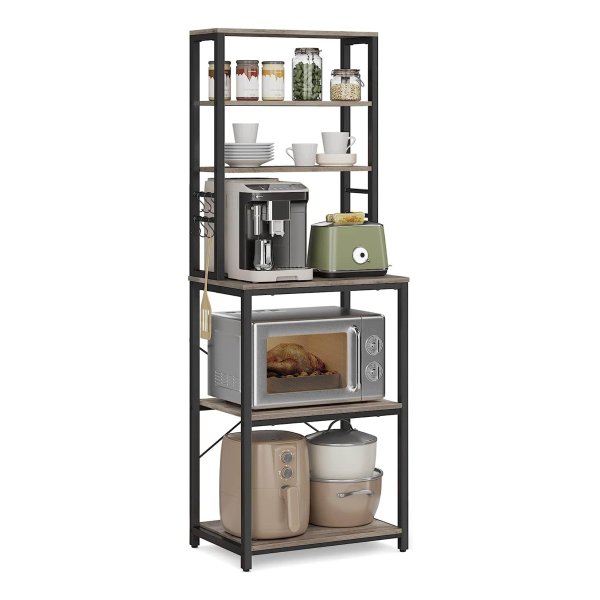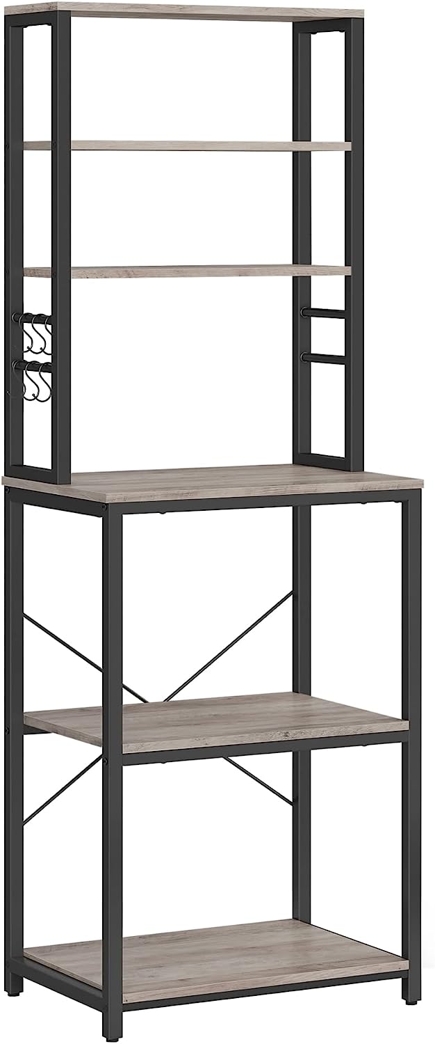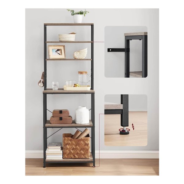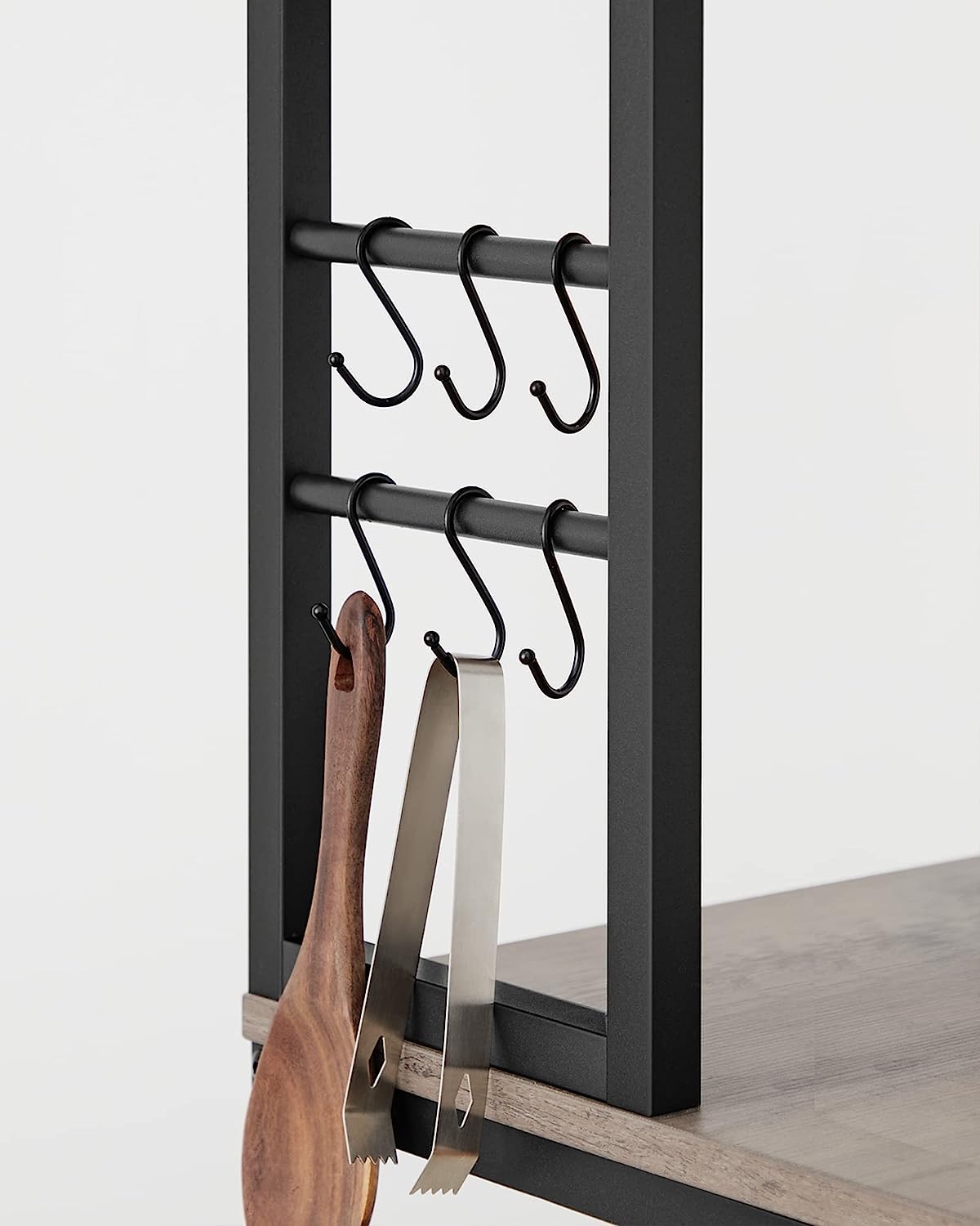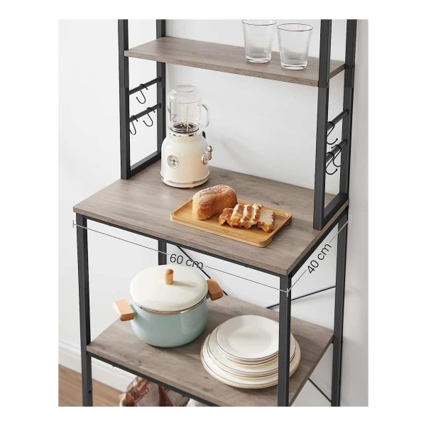 Industrieel Keukenrek Met 6 Planken En 6 Hakken – 40X60X167Cm – Grijs En Zwart