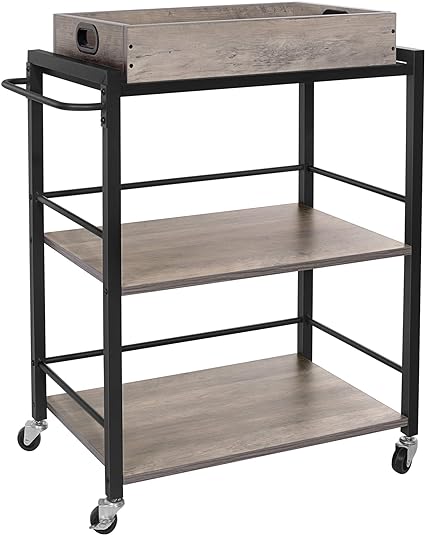 Keukentrolley met verwijderbare lade, universele wielen met remmen, nivellering voeten, stalen constructie, keukenrek, 65 x 40 x 86 cm, greige en zwart