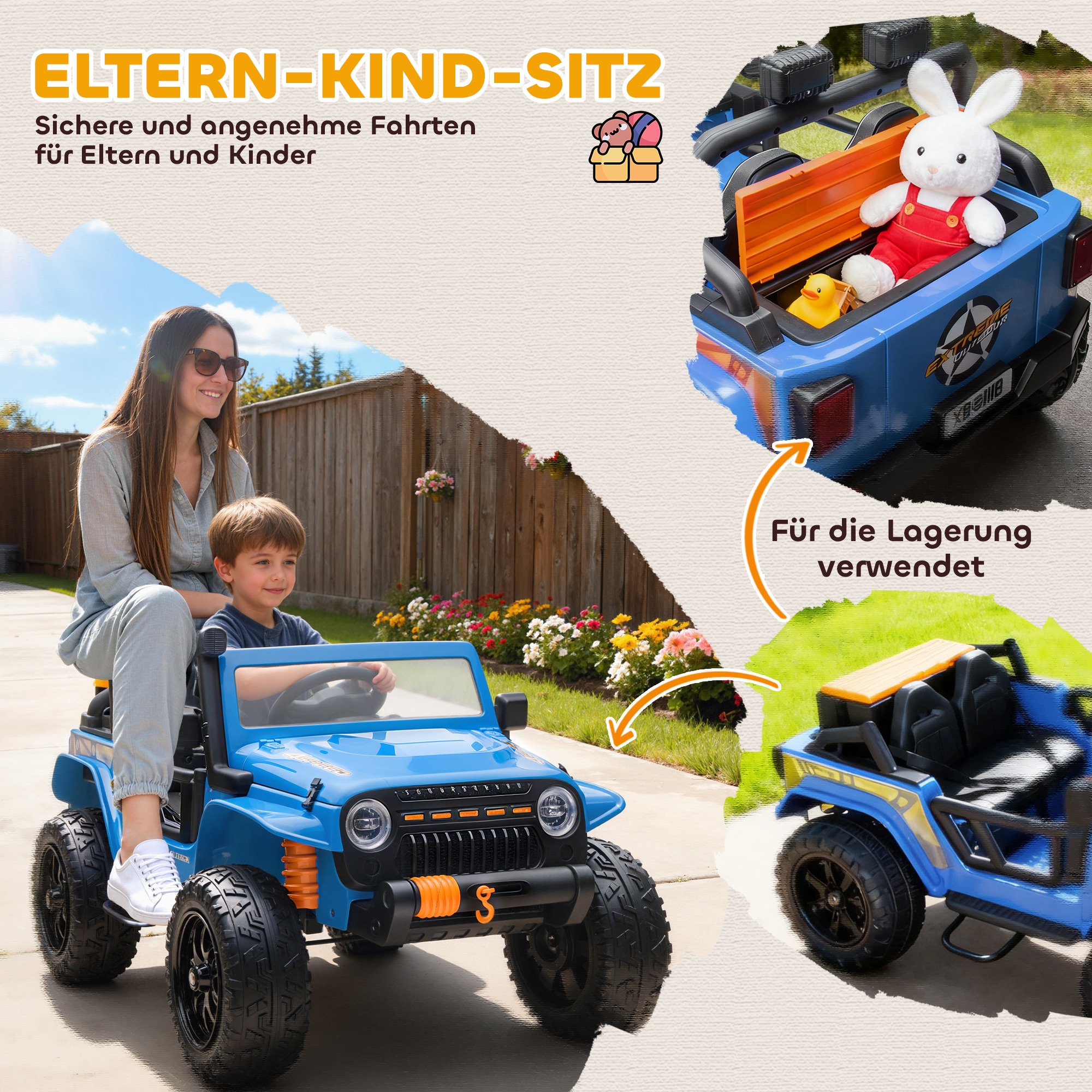 Kinderauto met ouder-kind zitplaats, LED-lampen en muziek. Sterke dubbele motoren, instelbare snelheden en veilige rijervaring voor kinderen van 3-8 jaar. Inclusief afstandsbediening voor ouders en veiligheidsgordel.