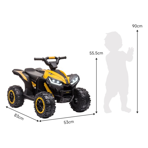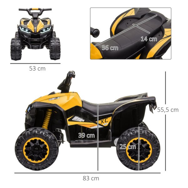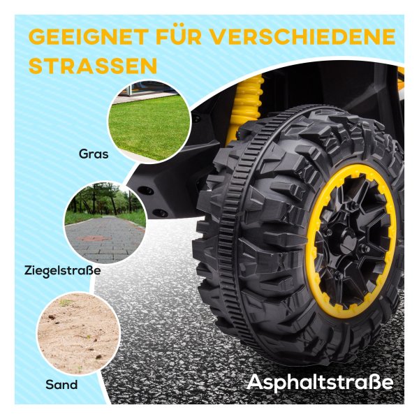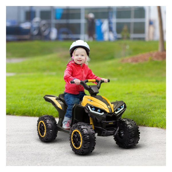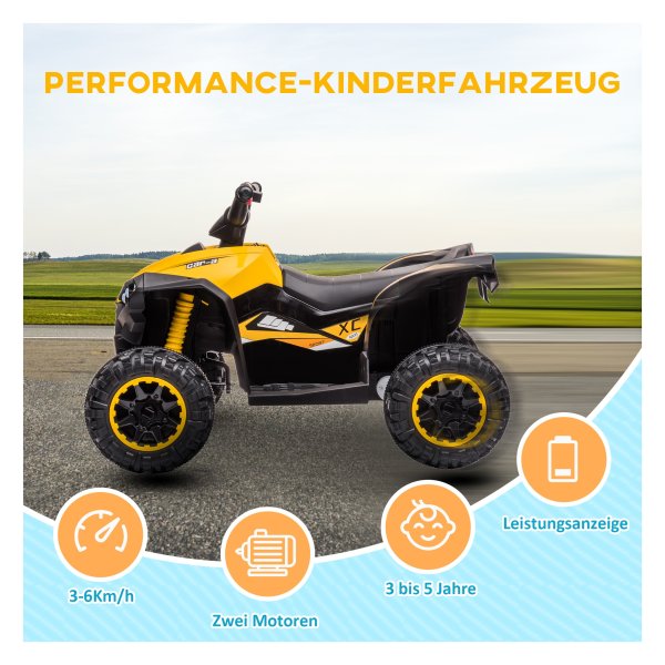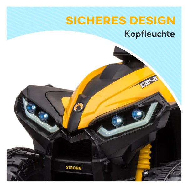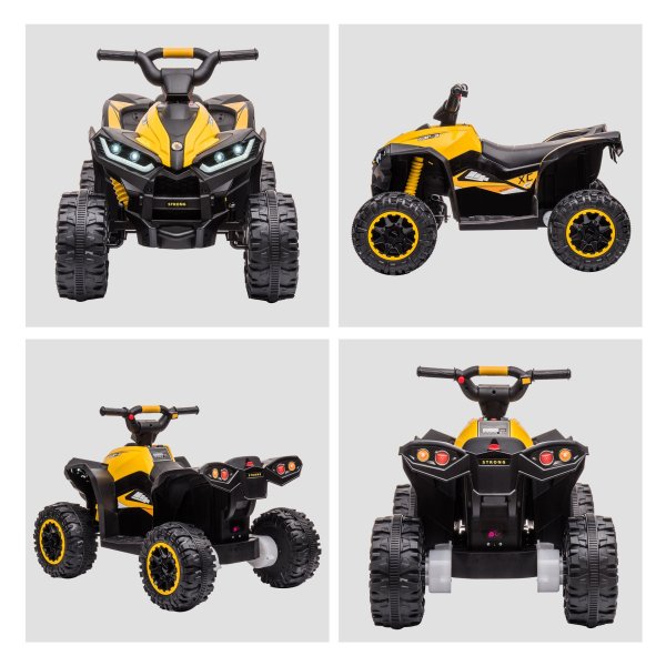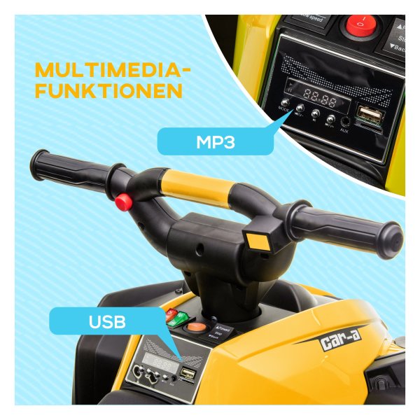 Klaar voor avontuur? Dit elektrische kinderquad in geel/zwart combineert fun met comfort en veiligheid. Met LED-koplampen, een MP3-speler en instelbare rijsnelheid beleven kids buitenpret met een echte quad-look & feel.