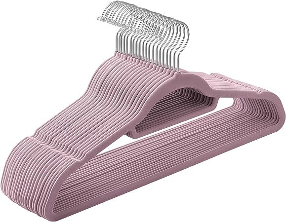 Kledinghangers fluweel set van 20 niet-slip kleine staaf voor banden 360 ° roteerbare haak 0,5 cm dikke ruimte bespaard 43,5 cm lang voor jassenjurken en broek zacht paars