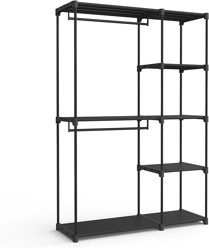 Kledingkast open, vrijstaande kledingkast, staande plank, kledingrek met kledingstangen, kapstok – Zwart 43x124x182cm