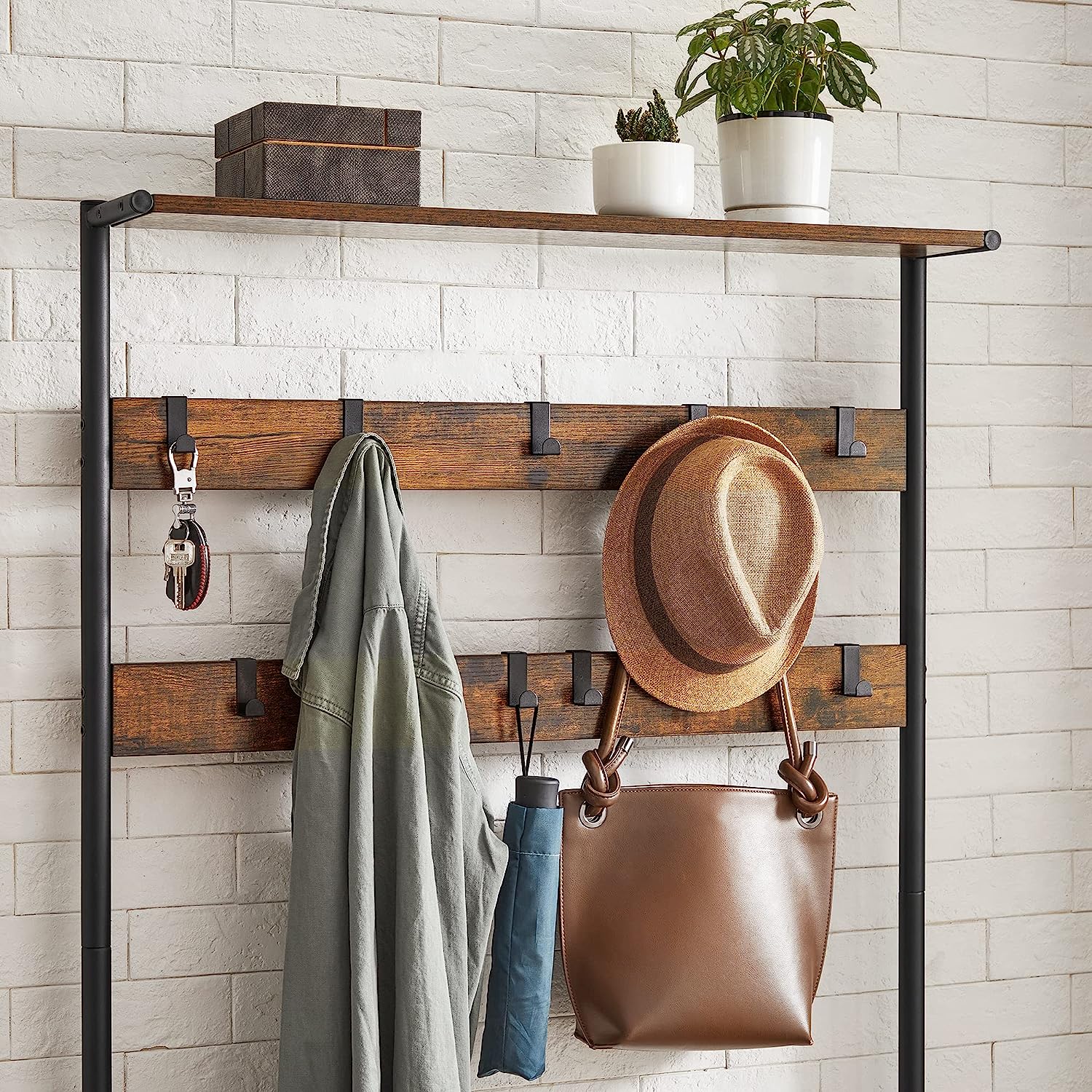 Industrieel Design Kledingrek Met 9 Hakken, Schoenenbank En Plank – 30 X 85 X 180,5 Cm – Vintage Bruin-Zwart – Perfect Voor Hal, Slaapkamer En Kleine Woningen