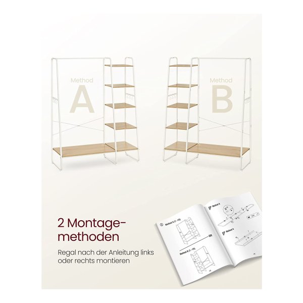 De montage van de kledingopberger is eenvoudig en snel dankzij de duidelijk gemarkeerde onderdelen en de geïllustreerde handleiding die wordt meegeleverd. Binnen no-time geniet je van een georganiseerde en stijlvolle ruimte waar al je kleding en accessoires netjes zijn opgeborgen.
