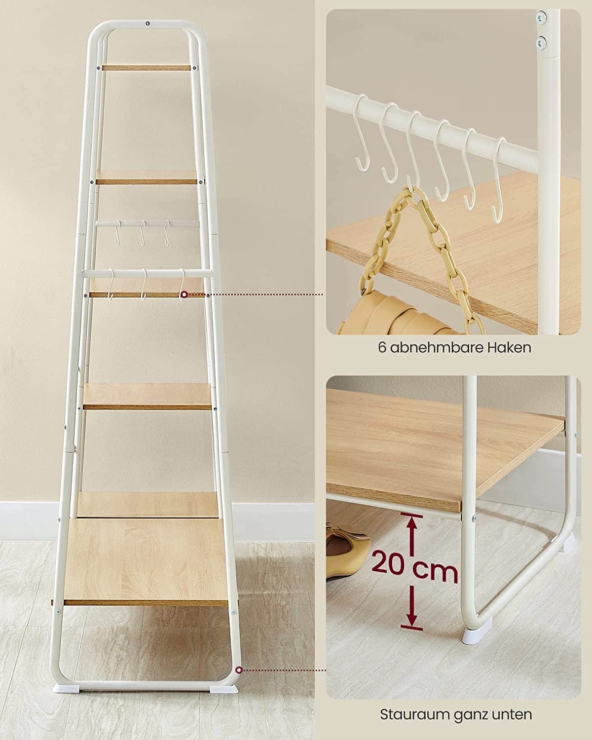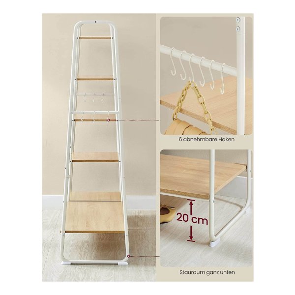 Kledingrek met Schoenenrek – 6 Haken – Garderoberek – Eiken Wit