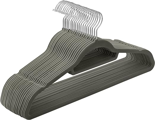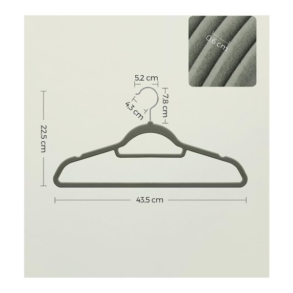 Hints: Gebruik voordat u de beugels gebruikt, een haardroger om de pluis op het oppervlak van de producten te blazen.(De pluis op het strijken of in de verpakkingszakken is een typische uitstraling. Er is geen reden om je zorgen te maken) Vermijd het niet om de beugels in kamers met een hoge vocht of hoge temporaties gedurende een lange periode te houden. De beugels. Productdetails: Materiaal: ABS (plastic) + Velvet kleur: grijze weg: 45 x 24 x 0,5 cm (w x h x d) H van de haak: 8 cm opening van de haak: 5,3 centimeter Leveringsomvang: 20 x hangers met een broekstang