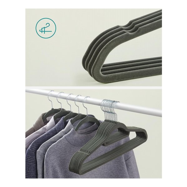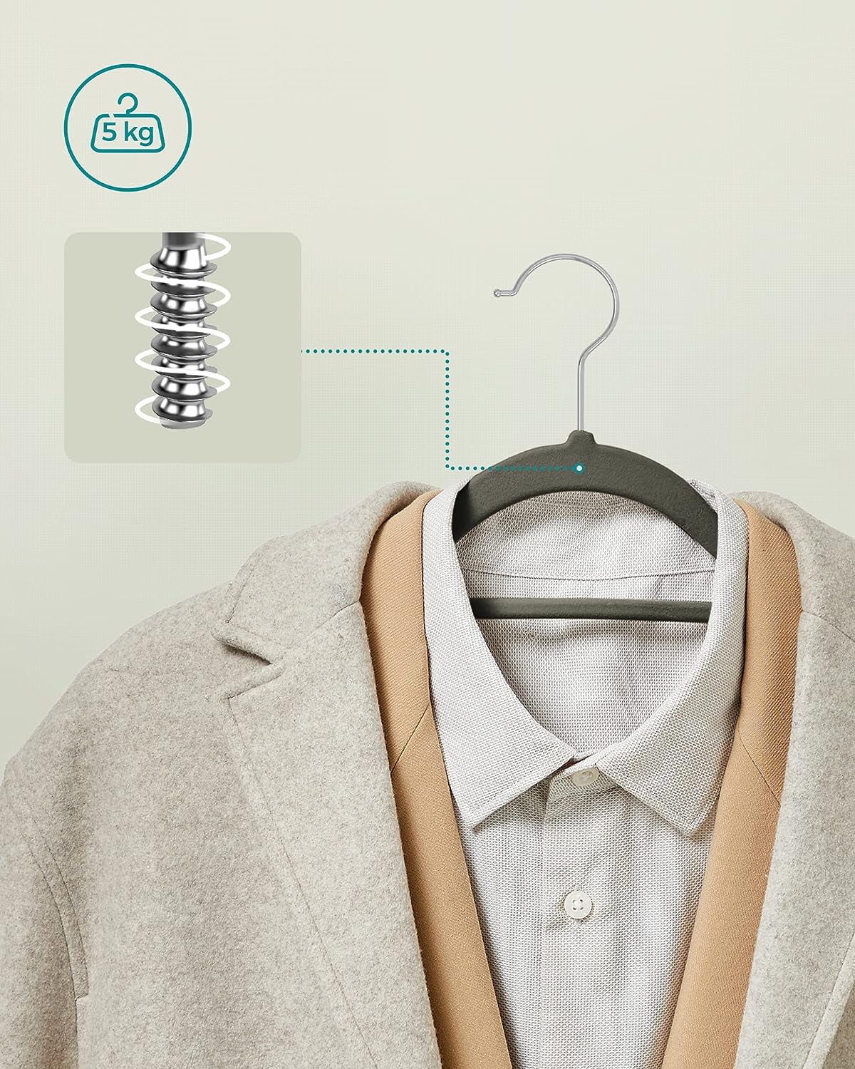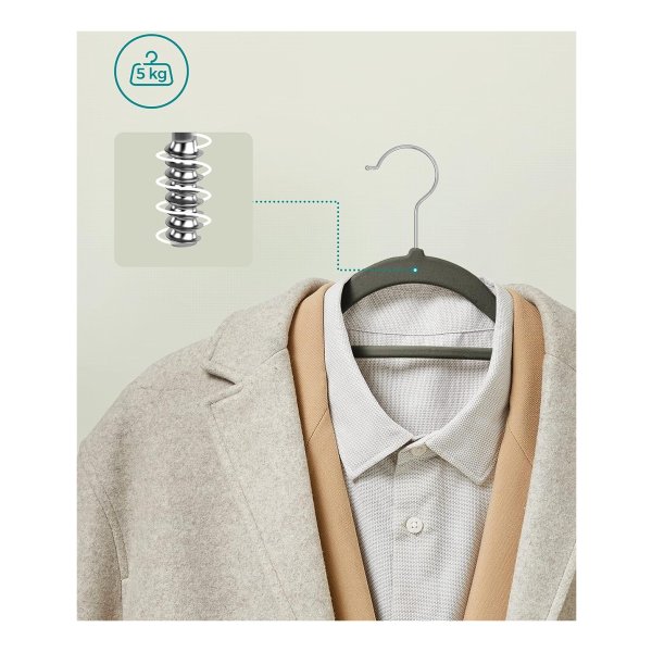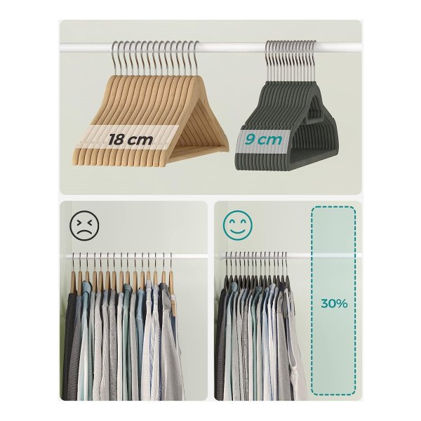 Bullet Point 1 | Niet-slip: hoogwaardige jashangers met fluwelen gecoat oppervlak dat kleding goed op het zachte oppervlak laat rusten.Kleding zal niet langer uitglijden en zijn vorm behouden |