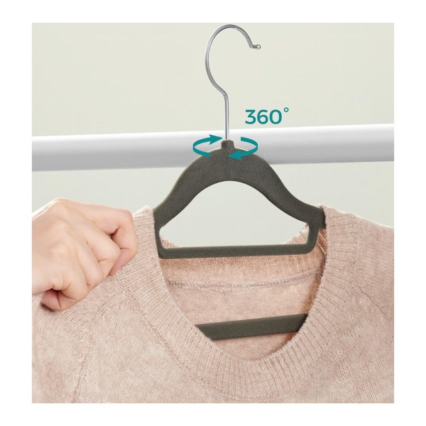 Kledinghangers, fluweel 20 stuks, 0,5 cm dik, kledinghanger, kleerhanger met niet-slipoppervlak, twee inkepingen, 360 ° roteerbare haak, niet-slip, grijs,