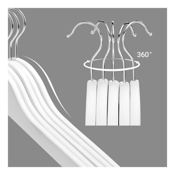 20 stuks vaste houten hanger houten hanger met inkepingen haak 360 ° roteerbare niet-slip voor jassen pakken jassen shirts witte CRW003WT20