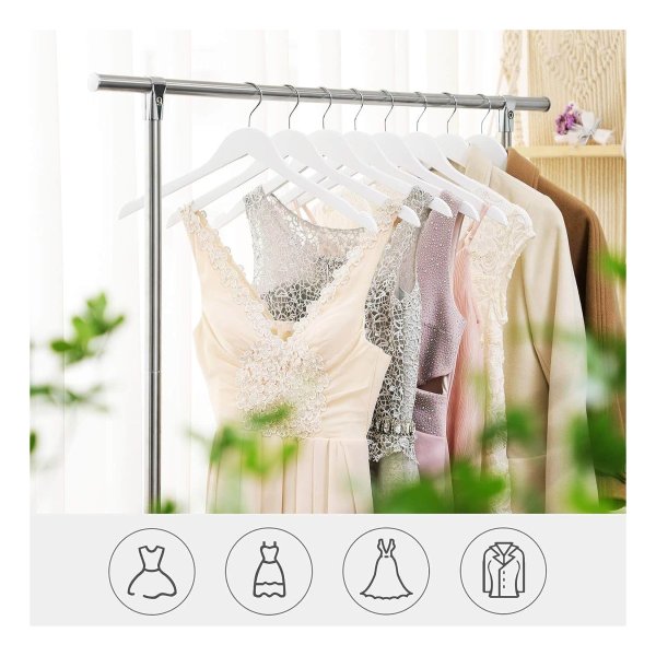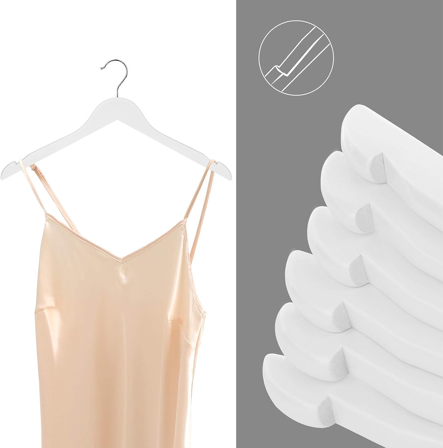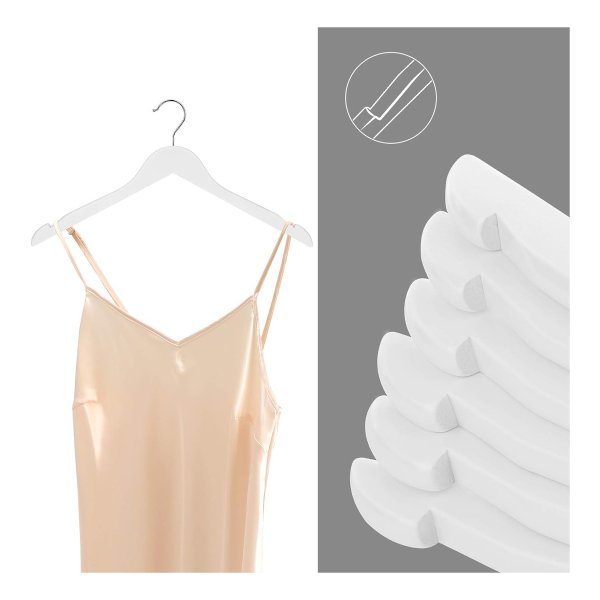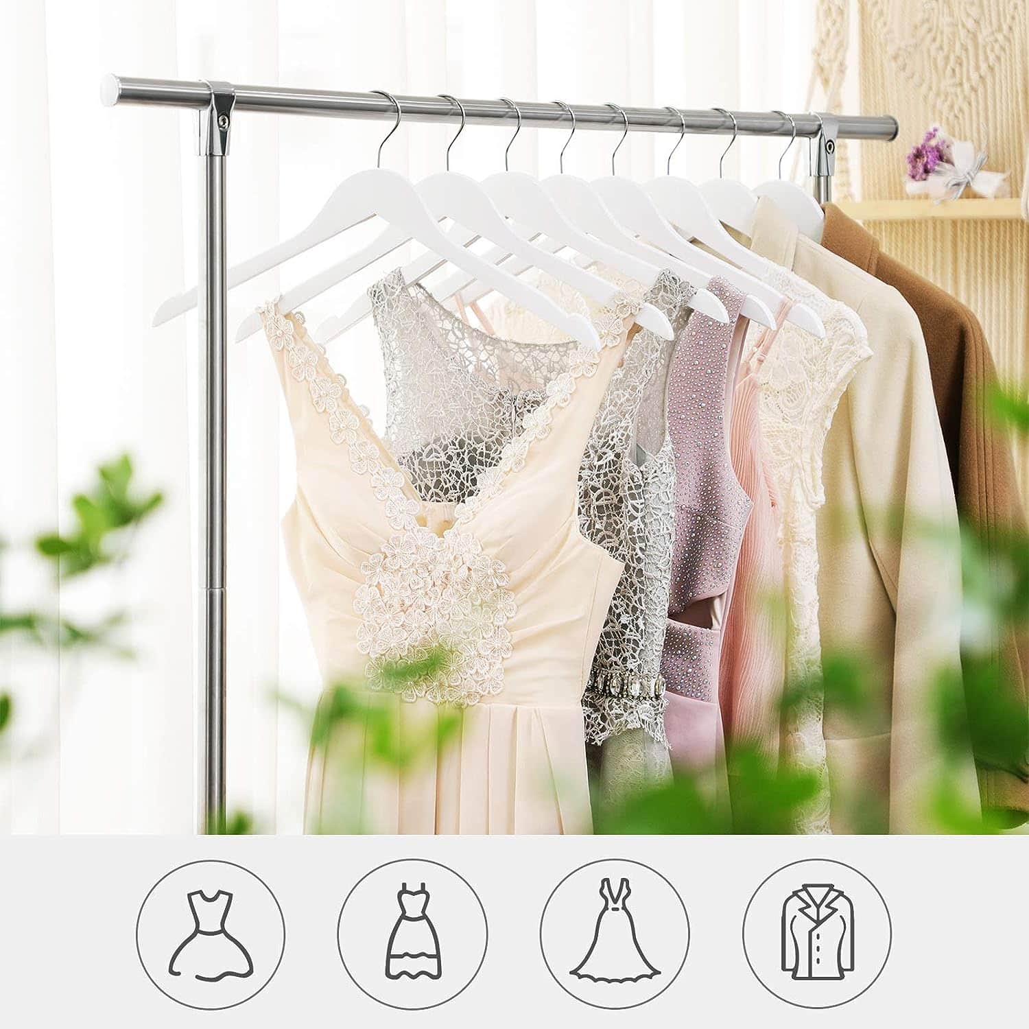Bullet Point 2 | Geen vervelend uitglijden: Ben je het zat om steeds weer je kleren van de kastvloer te moeten halen? Probeer deze kleerhangers van SONGMICS eens! De V-vormige inkepingen houden jurken en tops op hun plaats |