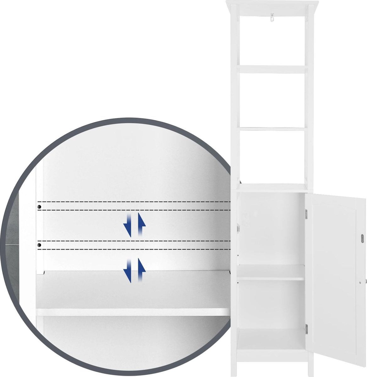 De witte kleur van de kolomkast zorgt voor een frisse uitstraling in elke ruimte. Of je hem nu plaatst in de badkamer, woonkamer, slaapkamer of hal, deze opbergkast voegt direct een vleugje elegantie toe. Het speciale vocht- en schimmelbestendige lak maakt de kast perfect voor gebruik in de badkamer, waar vochtige omstandigheden kunnen zorgen voor problemen met andere meubels.