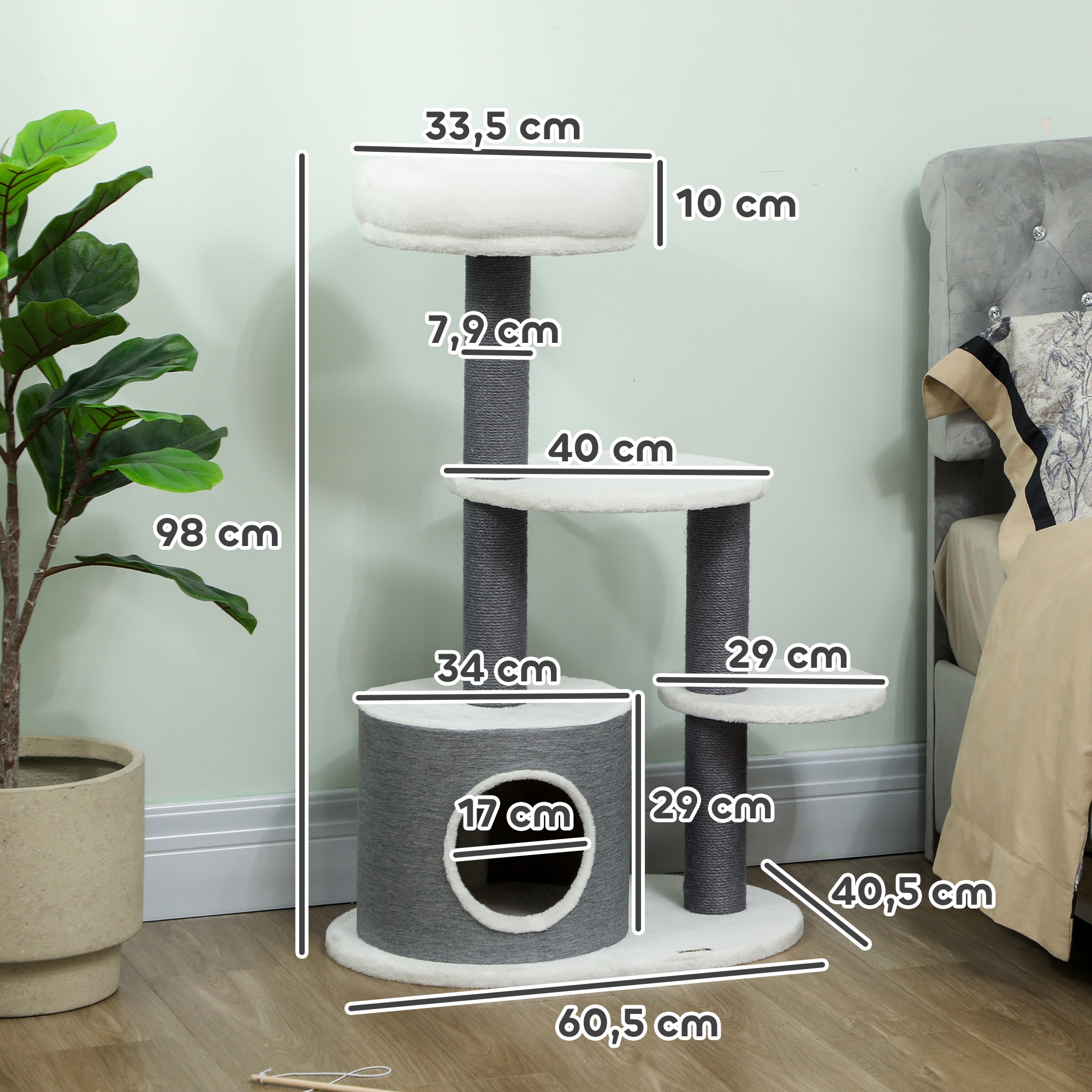 Dit krabmeubel voor katten beschikt over een kattenhol, platformen en jute touwpaal. Ideaal voor krabben, spelen en luieren. Gemaakt van stevig materiaal en past goed in elk interieur.