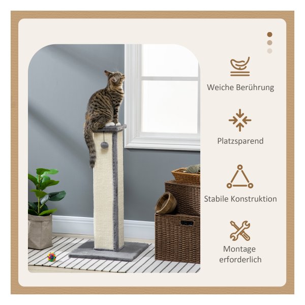 Krabmeubel – Sisal bekleding – Speelbal – Grijs/Crème