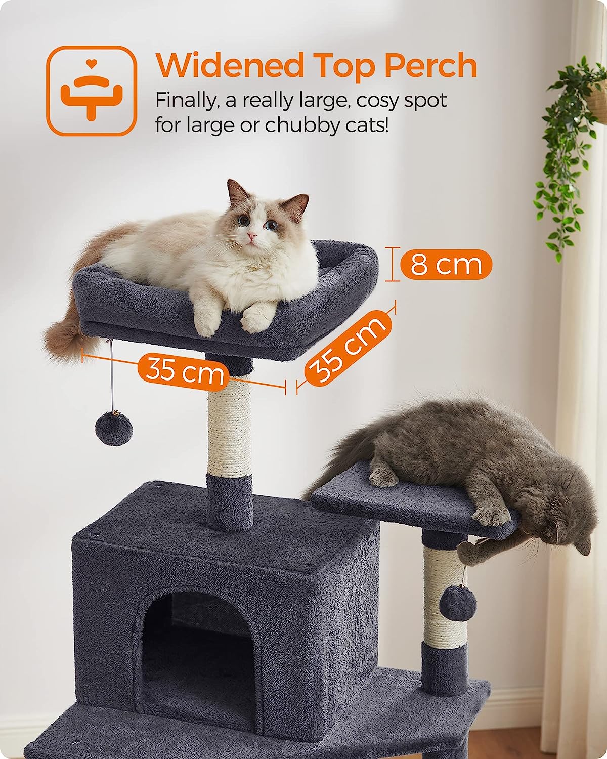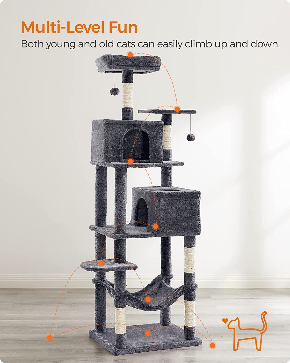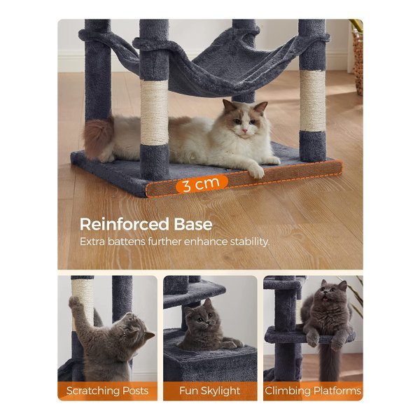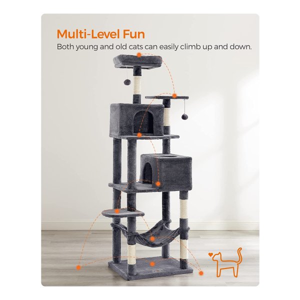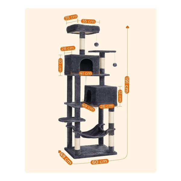 De paal heeft verschillende platformen en een hangmat waar je kat in kan liggen. De platformen zijn voorzien van een stevige rand waardoor je kat er niet gemakkelijk af kan vallen. De paal heeft ook een kraboppervlak waar je kat zijn nagels kan scherpen.