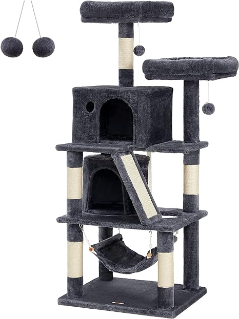 Krabpaal, kattenboom met 2 knuffelholten, 155 cm, rookgrijs