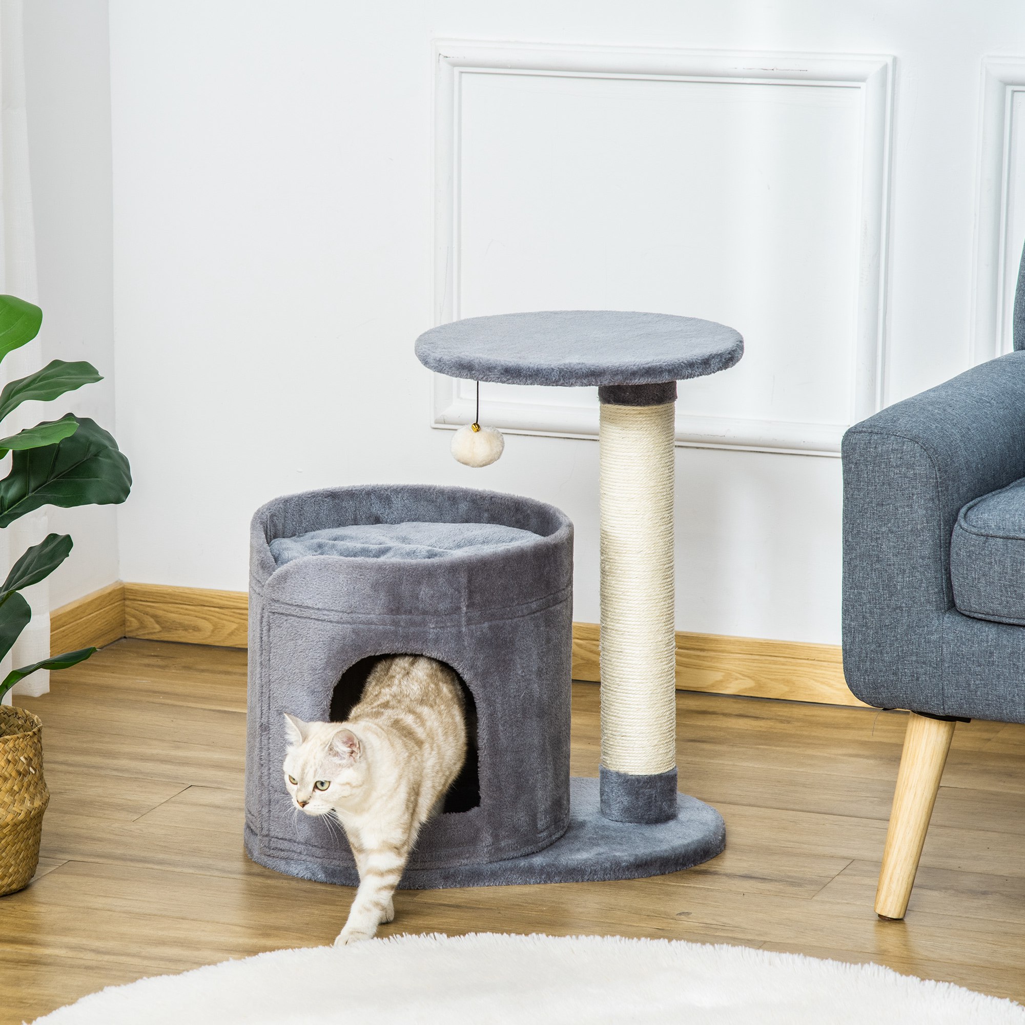 | Bullet Point 2 | Voldoe aan de natuurlijke instincten van je kat met deze mini-krabpaal van PawHut. Het biedt een grote kattenhut, hangende bal, krabpaal en platform voor plezier. Gemaakt van hoogwaardige materialen zoals spaanplaat, pluche en sisal. De ruime kattenhut zorgt voor een veilige rustplek, terwijl de sisalstof dient voor het scherpen van klauwen. Eenvoudige montage vereist en geschikt voor katten tot 4,5 kg. Kleur: grijs. Totale afmetingen: 55L x 36B x 59H cm. Bevat: krabpaal, handleiding. |