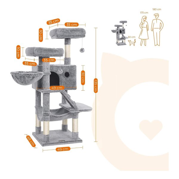 – Materiaal: Houten spaanplaat, 500 g/m² pluche, sisal.