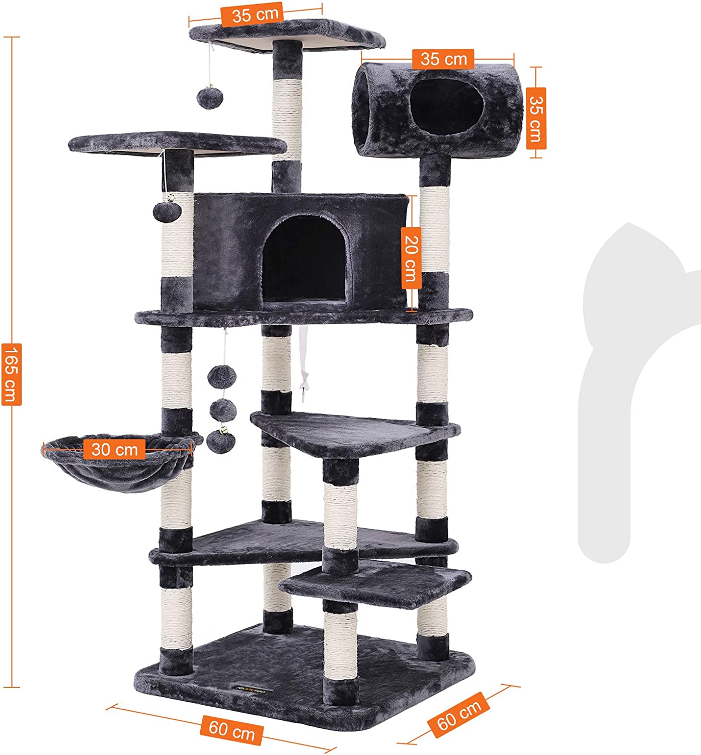 Op zoek naar de ultieme speelervaring voor jouw katten? Dan is dit luxe klimtoestel in de kleur grijs de perfecte keuze! Met zijn afmetingen van 100 x 165 x 90 cm (B x H x D) biedt deze speelboom een extra grote ruimte waar zelfs zware katten zich volledig kunnen uitleven.