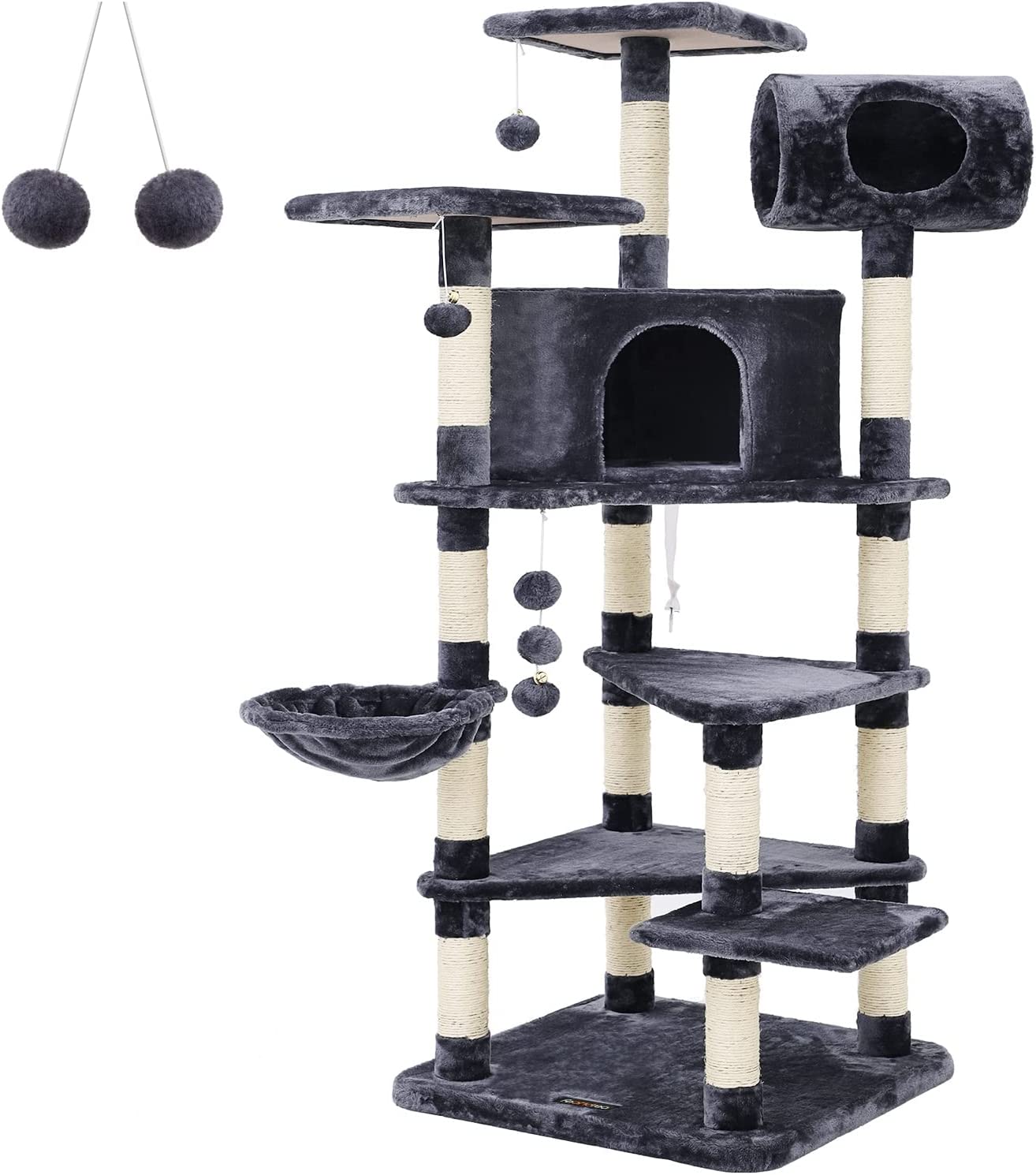 Kortom, dit luxe klimtoestel in grijs is de perfecte keuze voor kattenliefhebbers die hun harige vrienden willen voorzien van een veilige, stabiele en vermakelijke speelplek in huis. Laat jouw katten genieten van dit klimtoestel en geef ze een plek waar ze kunnen krabben, spelen en ontspannen!