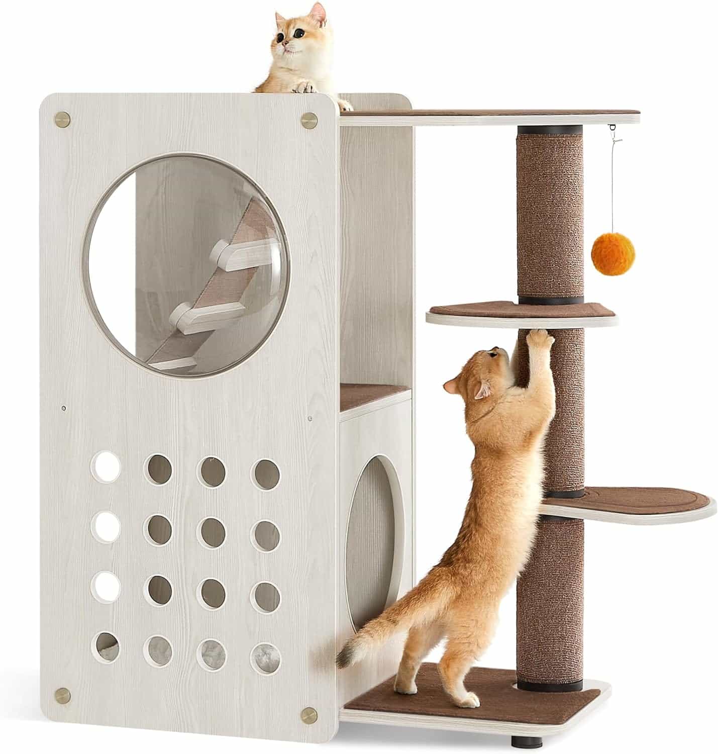 Krabpaal, Moderne Kattentoren, voor Binnenkatten, Kattenhuis, Dikke krabpaal, grot, zitstokken, zachte ladder, vervangbare onderdelen, havermoutbruin en koffiebruin