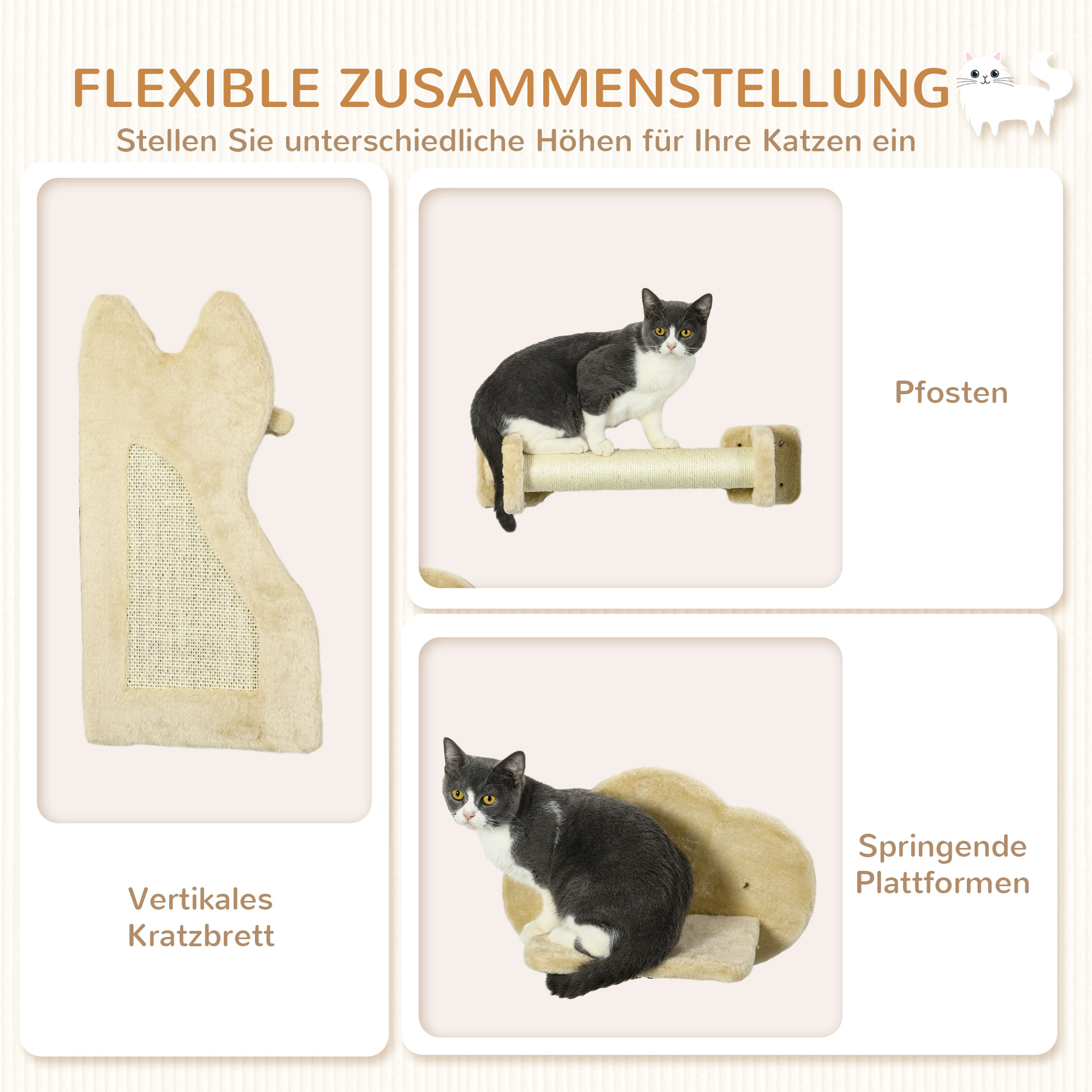 | Bullet Point 4 | De montage van deze PawHut katten trap is eenvoudig en biedt flexibiliteit doordat het aan de muur kan worden bevestigd. De set bestaat uit een platform, een krabplank en twee treden, wat uw huisdier een mooie, hoge plek biedt om te spelen en te ontspannen. Daarnaast is het ontwerp geschikt voor kleinere ruimtes, omdat het geen vloeroppervlak in beslag neemt. Gemaakt van duurzaam spaanplaat, biedt deze set uw kat een rustige plek om zich terug te trekken. Het kraboppervlak helpt de klauwen scherp te houden en vermindert het krabben aan meubels. Met een draagkracht van 8 kg en aanbevolen gewicht tot 5 kg is dit een handige toevoeging aan het huis voor uw geliefde kat. Montage is vereist en de set wordt geleverd met een handleiding voor extra gemak. |