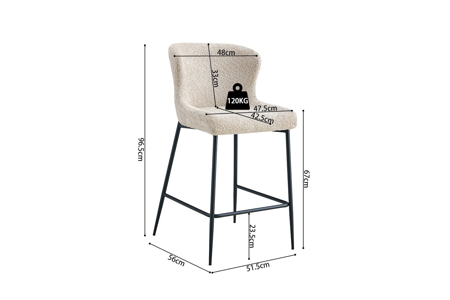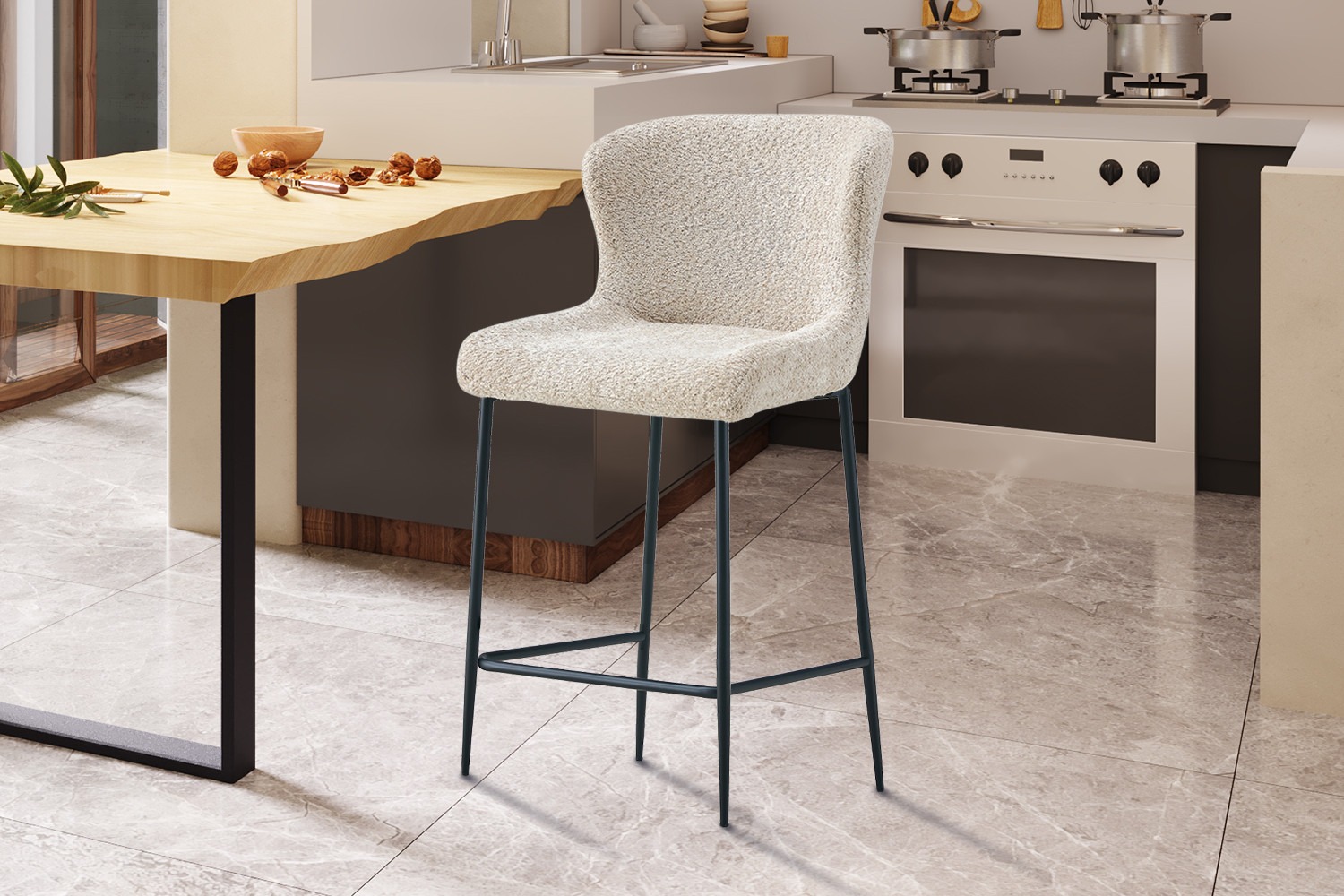 Een beige bouclĂ© counterstoel genaamd ‘Lisa’ met afmetingen van 96. 5 x 51. 5 x 56 cm. Bestel nu bij Simpledeal.