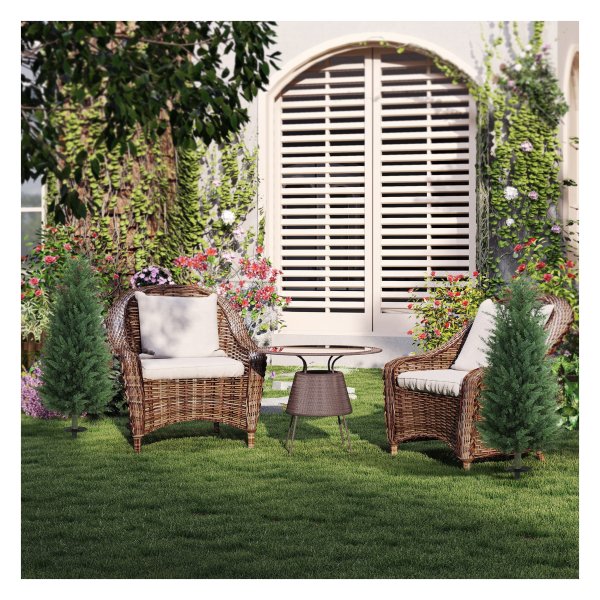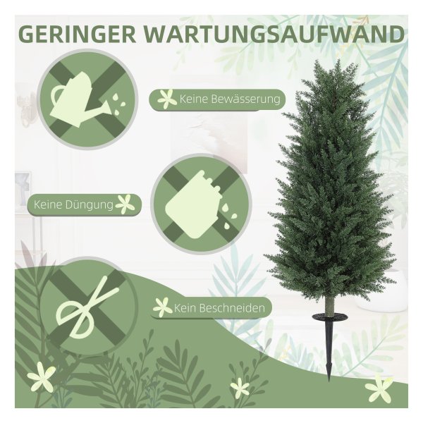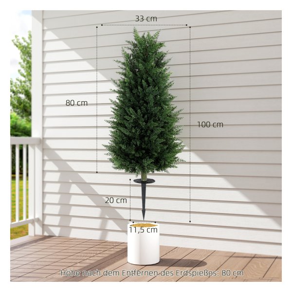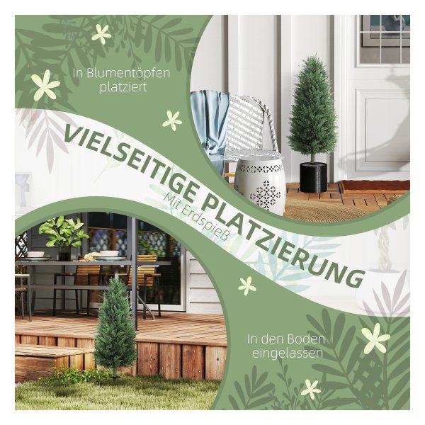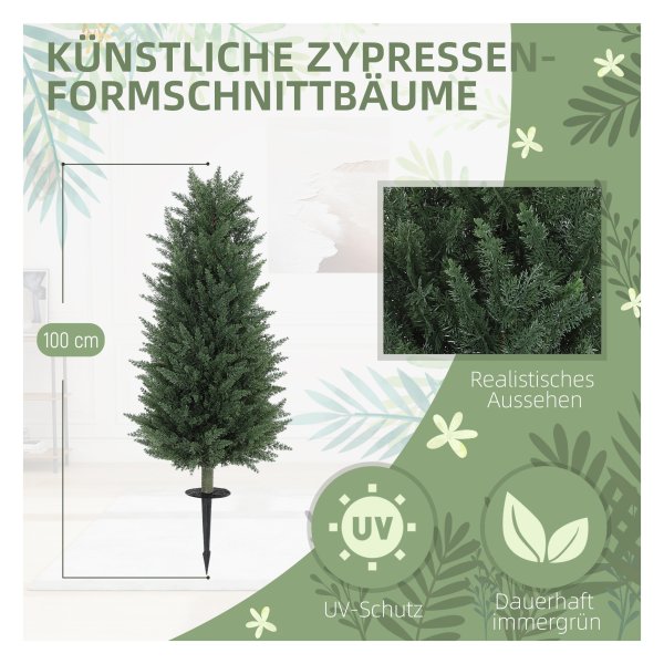 Elegant en onderhoudsvrij kunstplanten set van 2 zypressen met realistische uitstraling en 831 bladeren per stuk. Gemaakt van duurzaam PE-materiaal, ideaal voor binnen en buiten. Makkelijk te plaatsen met bijgevoegde bodemankers, geen water of zonlicht nodig.