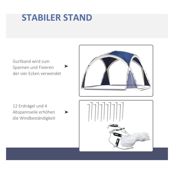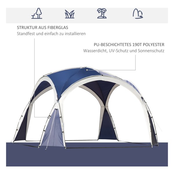 De koepeltent biedt met zijn ruime afmetingen van 3,5 x 3,5 meter voldoende plek voor u, uw gezin en vrienden om te genieten van de schaduw en bescherming tegen lichte regen. Het gemakkelijk toegankelijke en open ontwerp zorgt voor een aangename sfeer waarin u kunt ontspannen en genieten van het buitenleven.