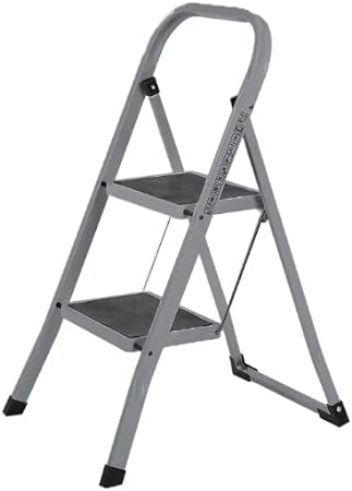 Ladder met 2 stappen, vouwladder, veiligheidslot voor vouwen, gemakkelijk op te slaan, laadvermogen 150 kg, taupe
