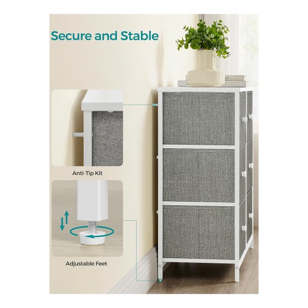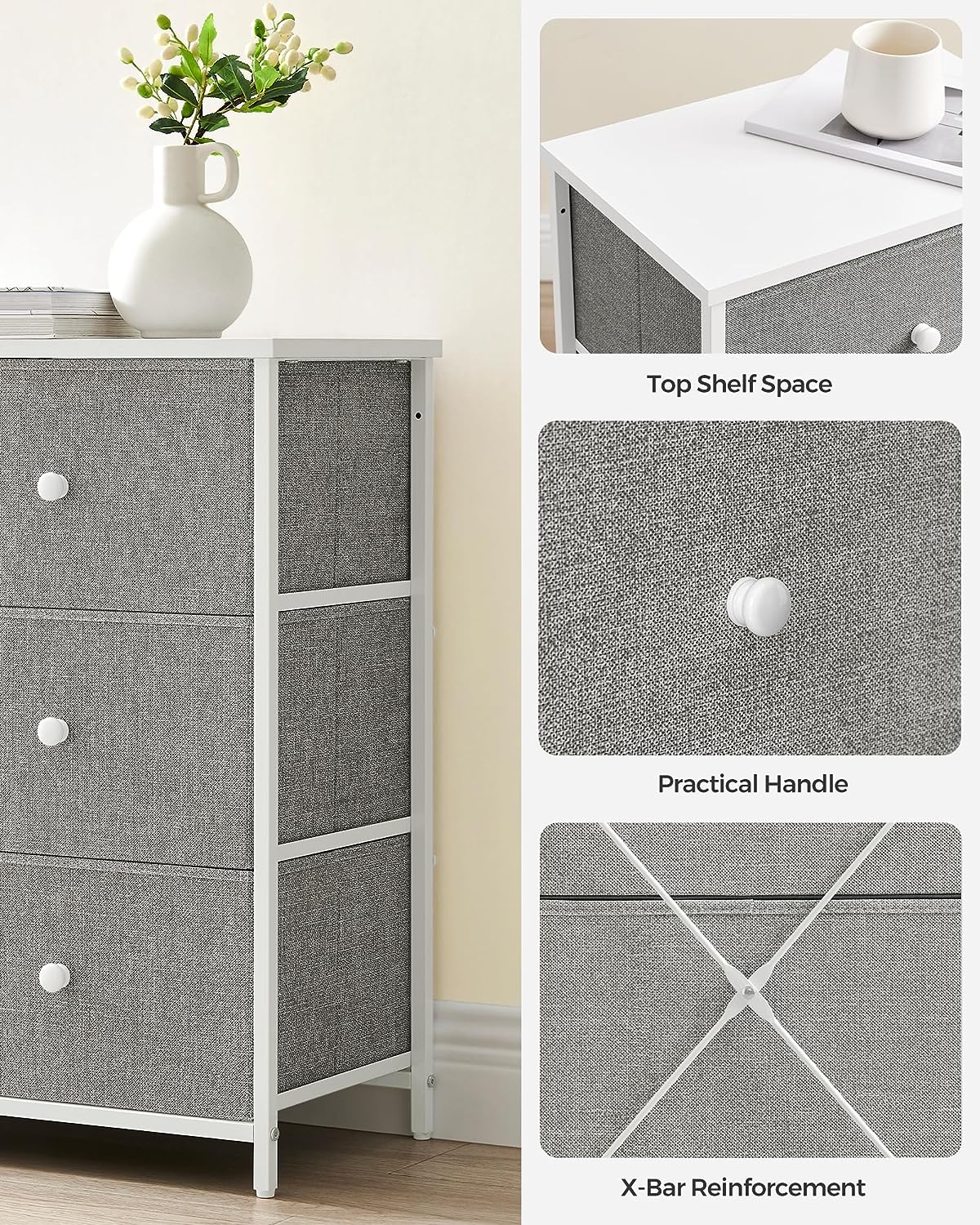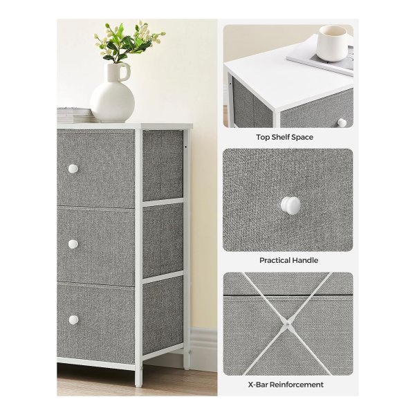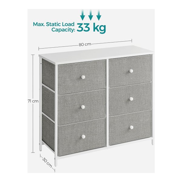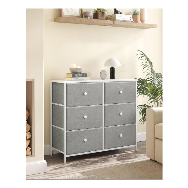 Tags: 6 stoffen lades met, Dressoir, ladekast, lichtgrijs en wit, LTS323L10, metalen frame, opbergeenheid