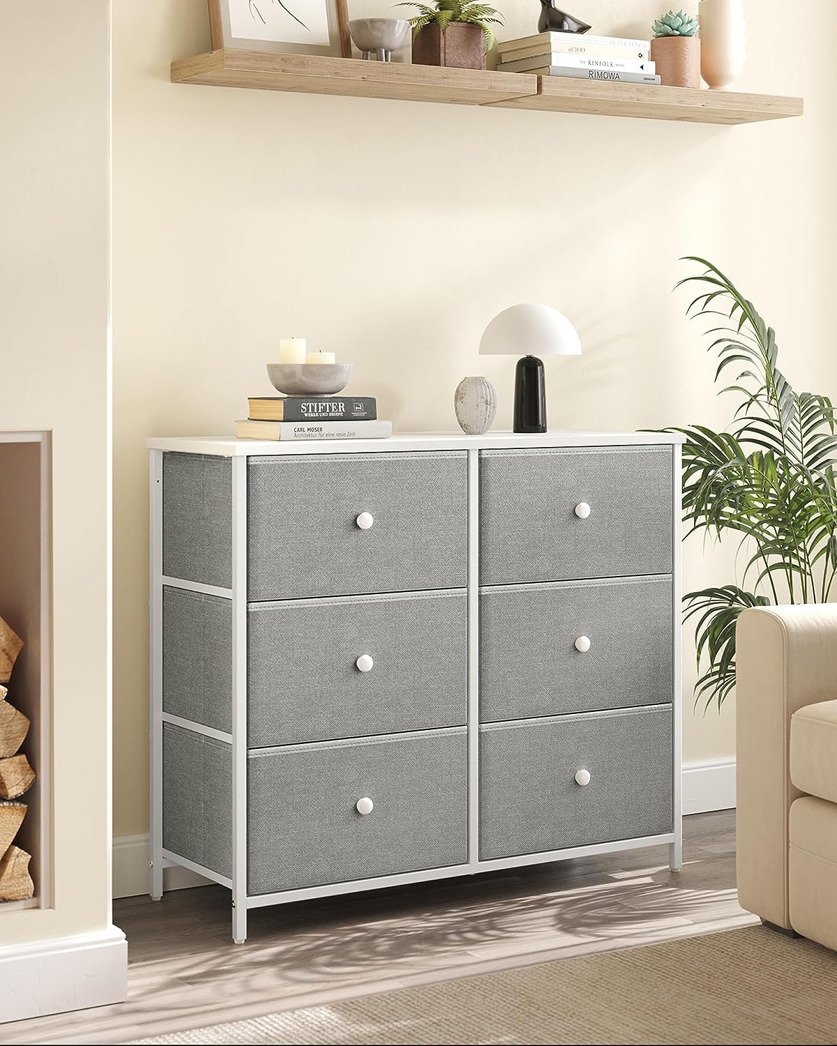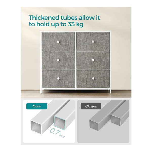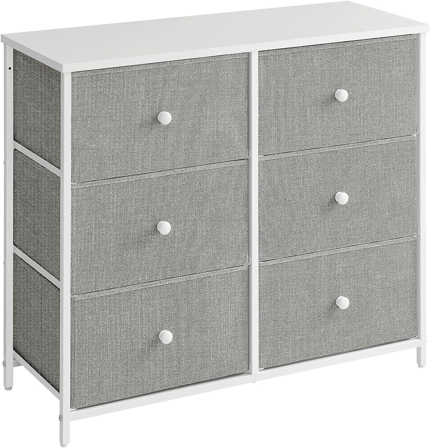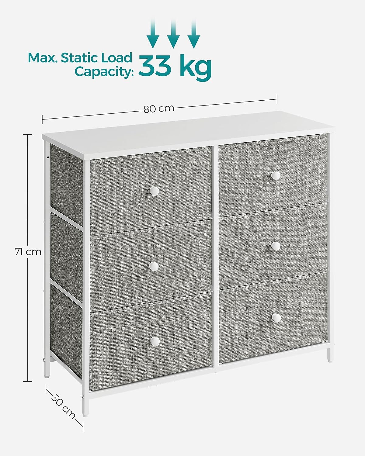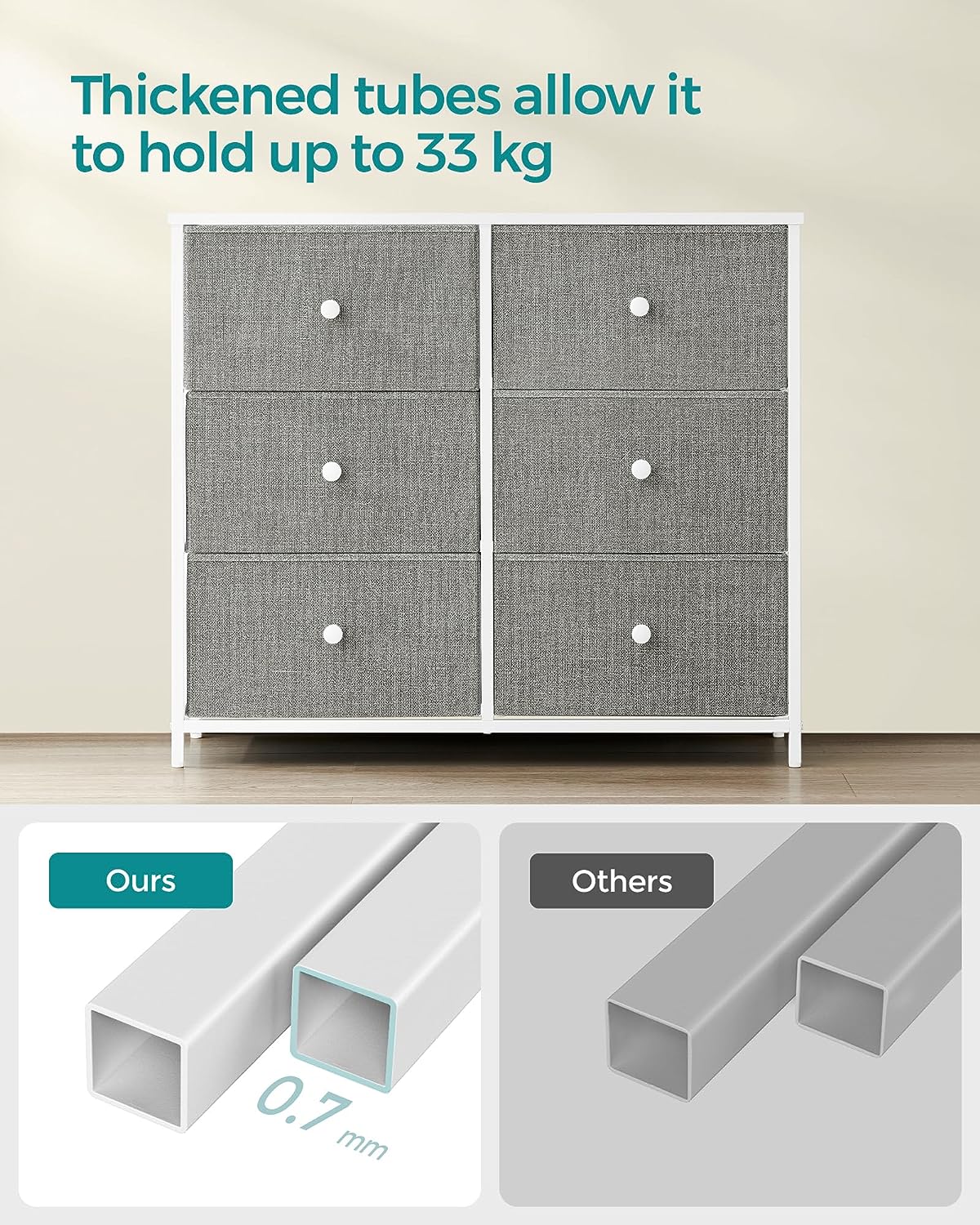 Ladekast, 6 Stoffen Lades Met Metalen Frame, Opbergeenheid, Dressoir, Voor Kinderkamer, Slaapkamer, Hal, Lichtgrijs En Wit