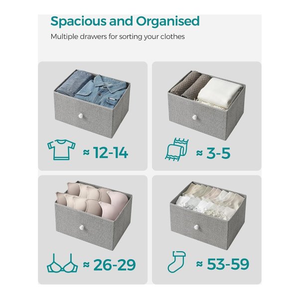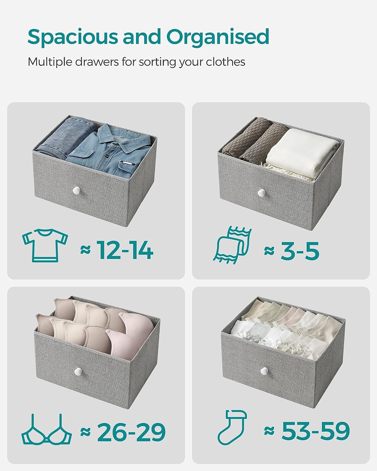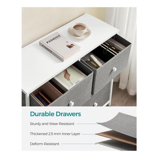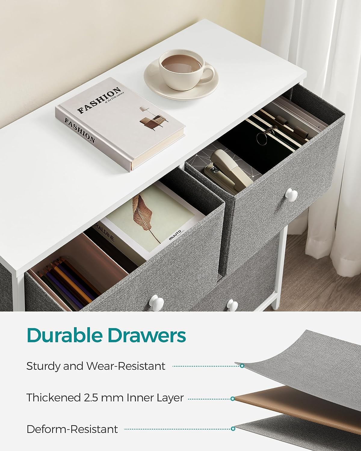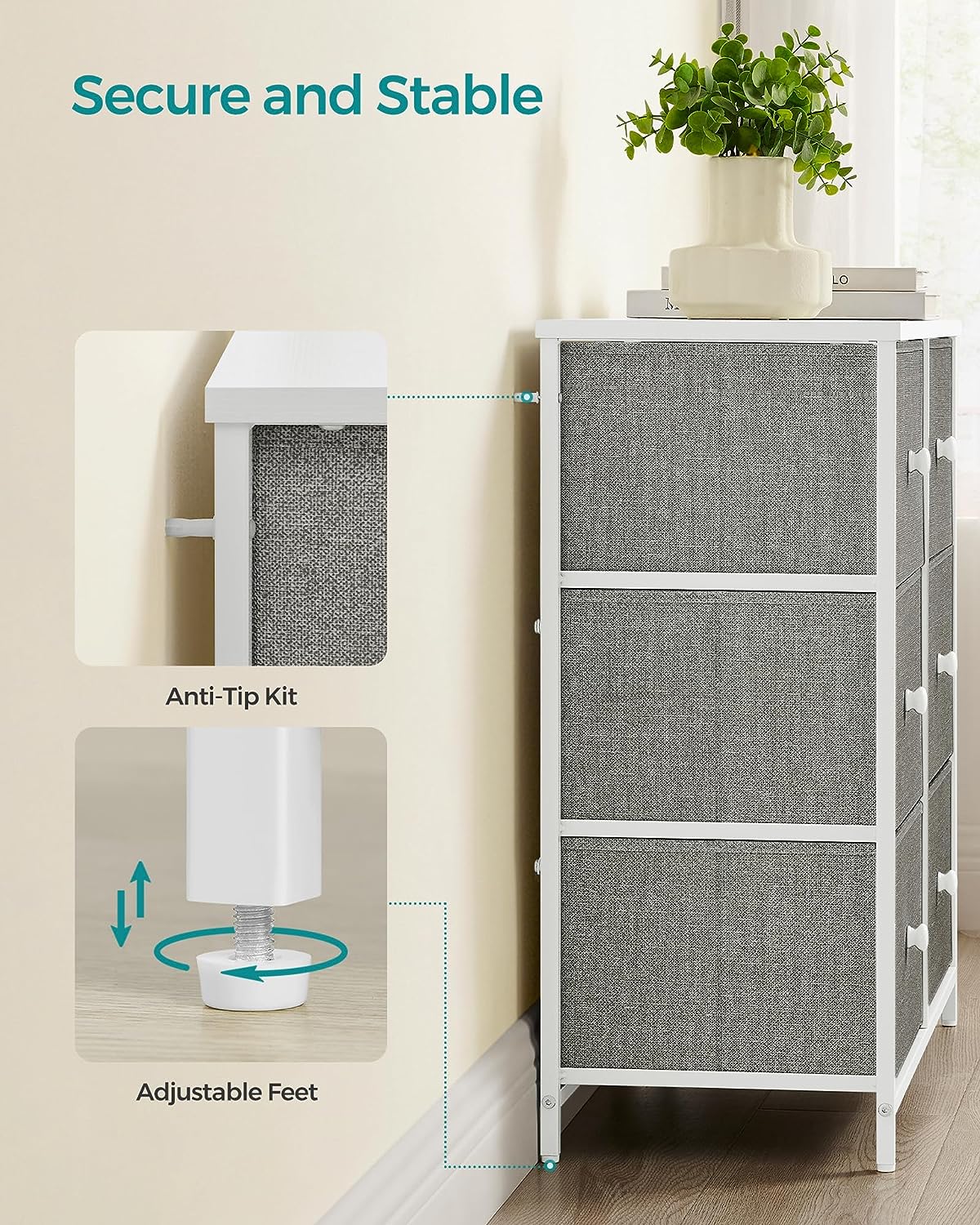 Ladekast, 6 Stoffen Lades Met Metalen Frame, Opbergeenheid, Dressoir, Voor Kinderkamer, Slaapkamer, Hal, Lichtgrijs En Wit