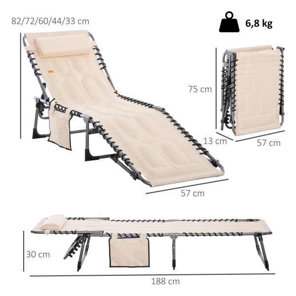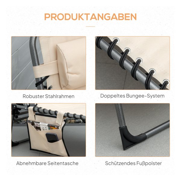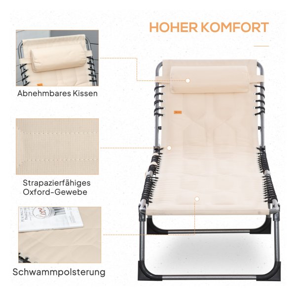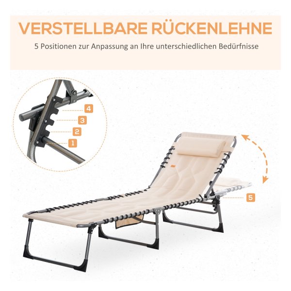 Genießen Sie Entspannung an der frischen Luft mit dieser klappbaren wetterfesten Sonnenliege. 5-stufig verstellbare Rückenlehne und Komfortable Polsterung. Leicht zu transportieren und zu verstauen.