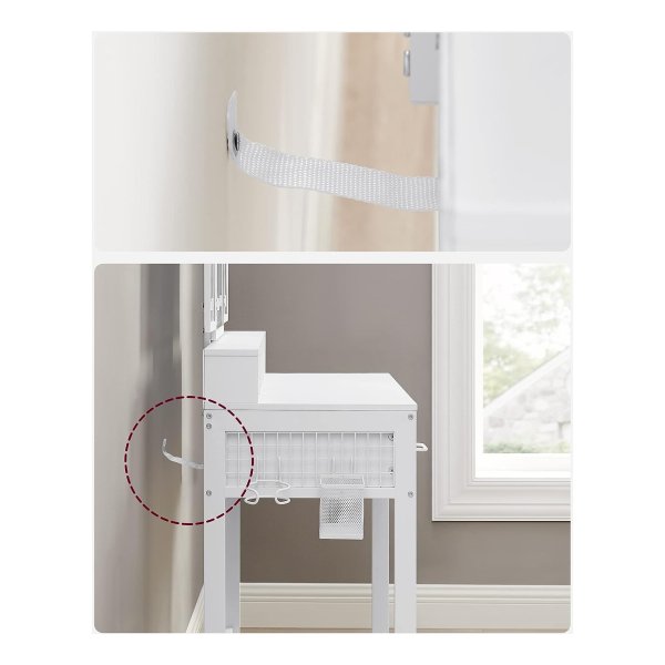 Bullet Point 3 | – – Inclusief handige opbergfuncties met speciale ruimtebesparende mogelijkheden voor een georganiseerde kaptafelervaring. |