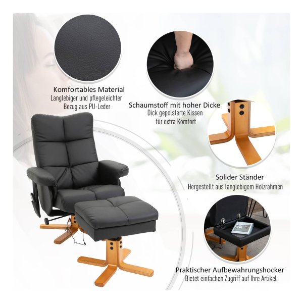 De massagestoel beschikt over een verstelbare rugleuning en voetensteun, waardoor je altijd de perfecte positie kunt vinden voor ultiem comfort. De zachte bekleding en ergonomisch ontwerp zorgen voor een comfortabele zitervaring tijdens elke massagebeurt.