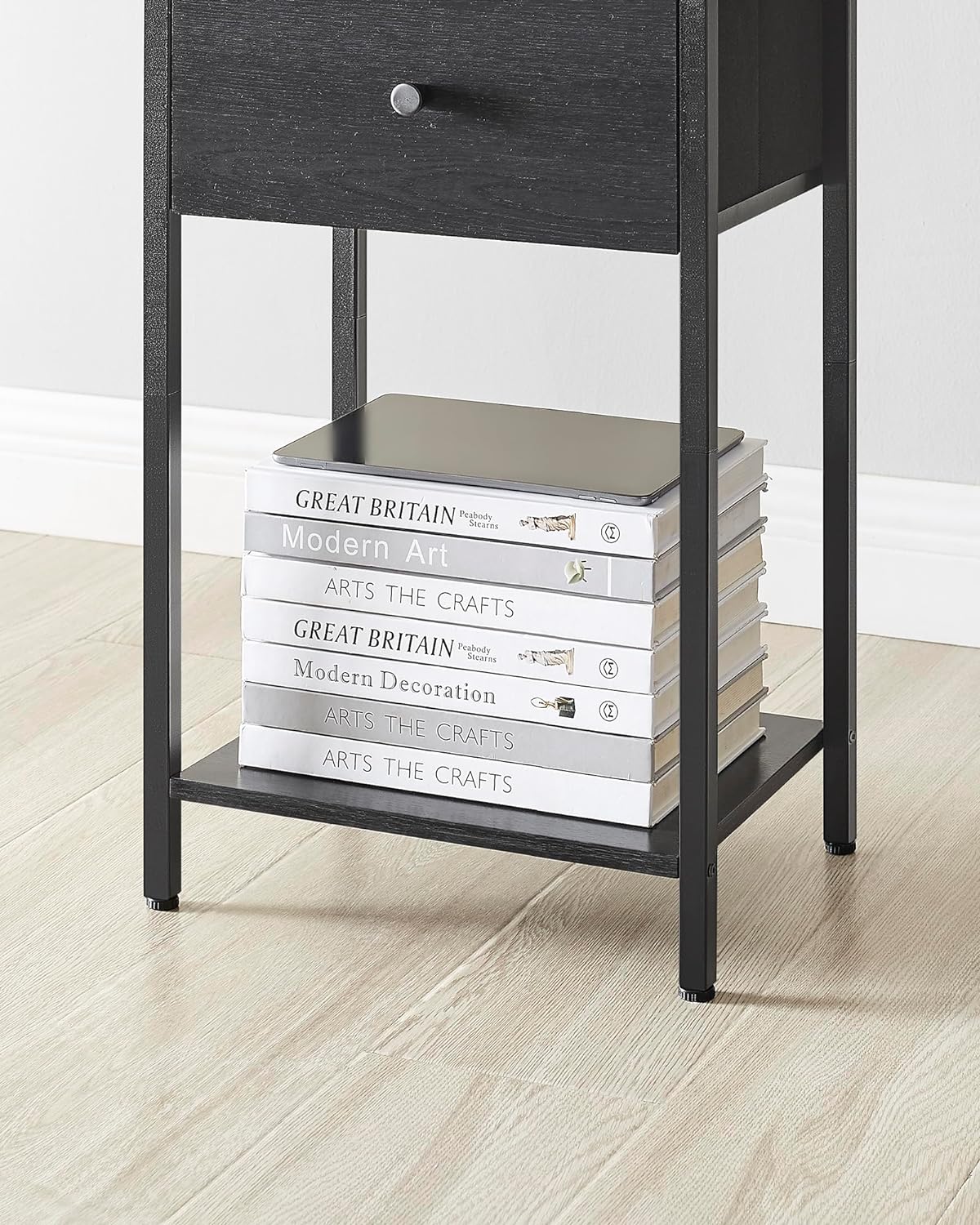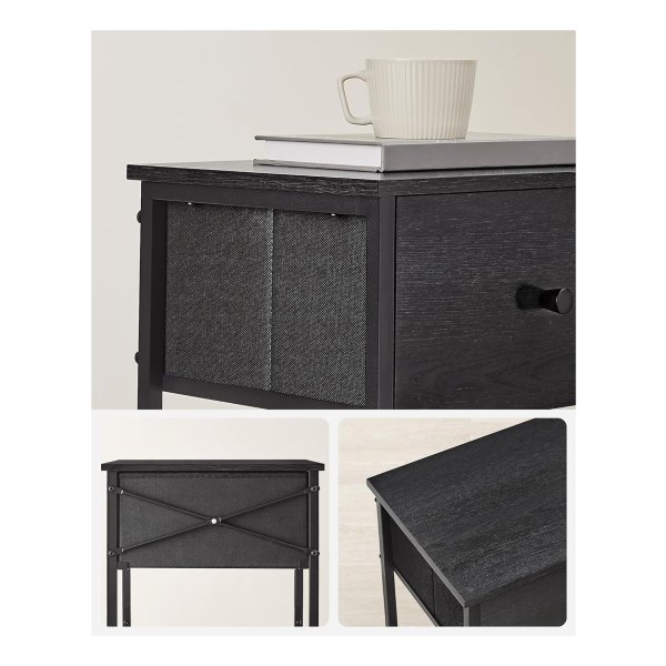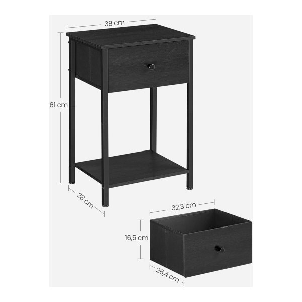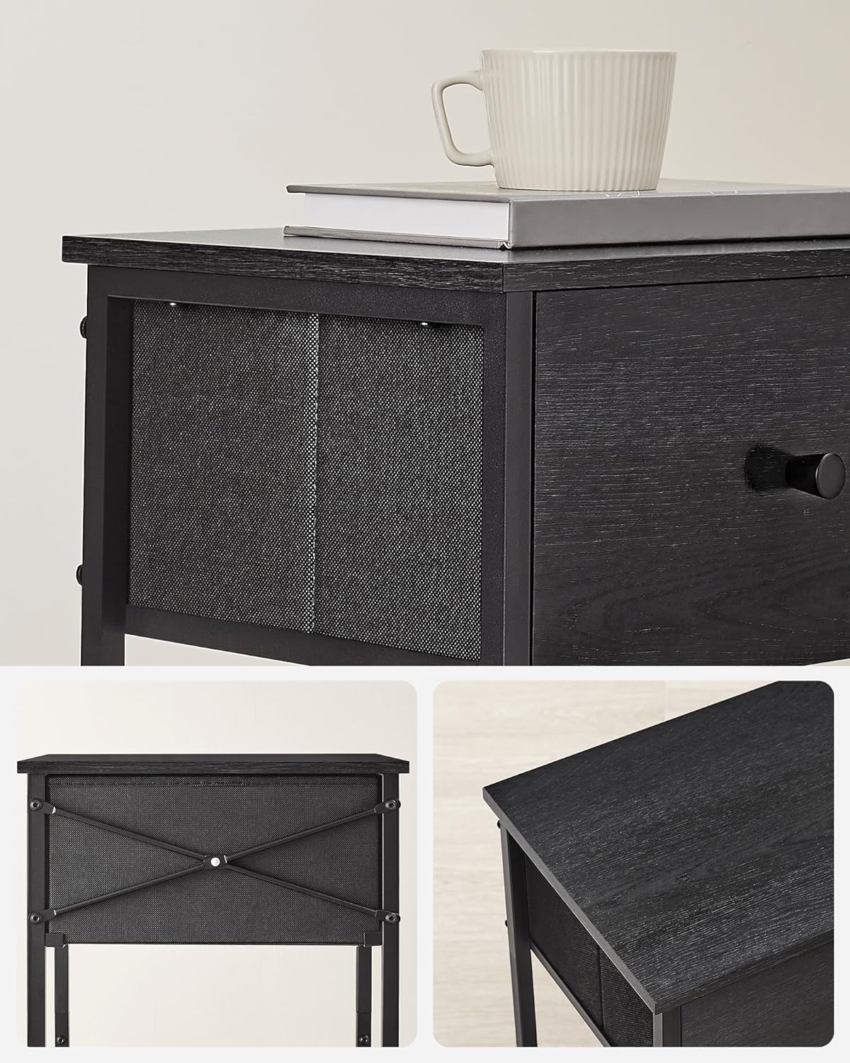 Nachtkastje, bijzettafel met stoffen lade, 61 cm hoog nachtkastje, met plank, voor woonkamer, slaapkamer, zwart