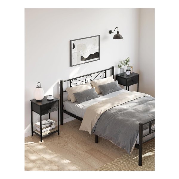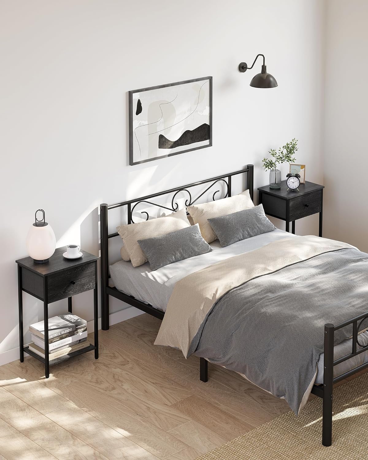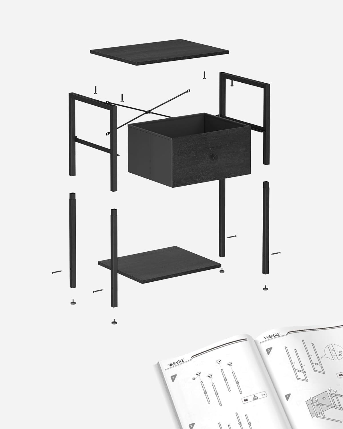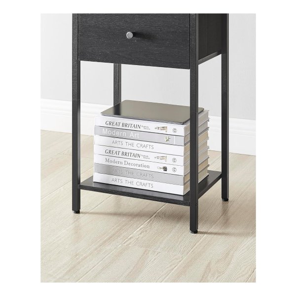Nachtkastje, bijzettafel met stoffen lade, 61 cm hoog nachtkastje, met plank, voor woonkamer, slaapkamer, zwart