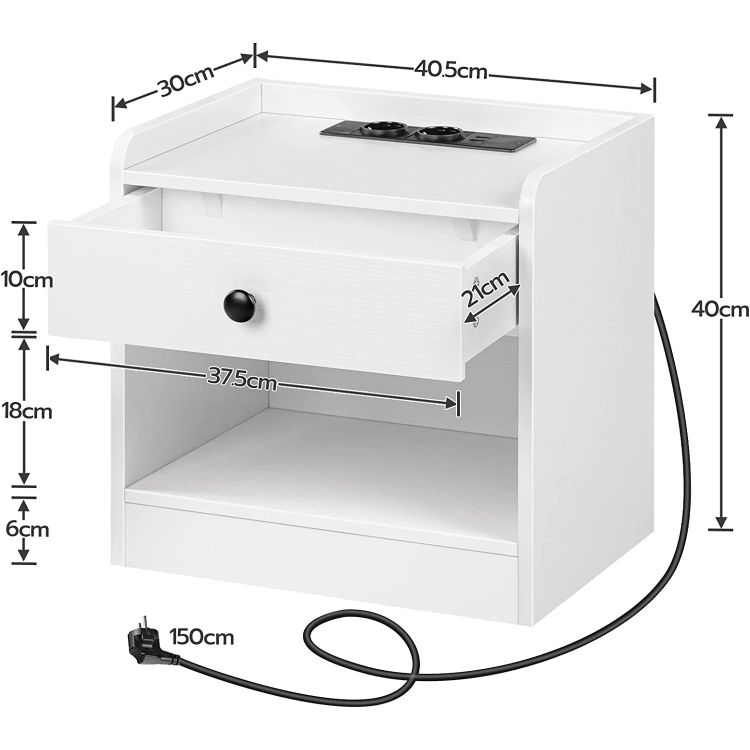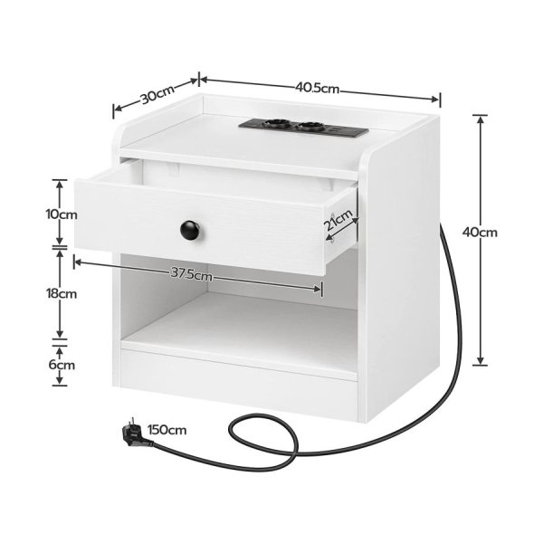 Bullet Point 3 | Veel opslagruimte: dit nachtkastje met een socket van 30 x 40,5 x 40 cm heeft 1 lade en 2 open niveaus voor eenvoudig dagelijks gebruik en biedt voldoende ruimte voor het organiseren van kleine items.Geschikt voor kleine ruimtes zoals slaapkamer, eetkamer, kantoor en overal waar u het wilt plaatsen. |