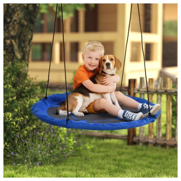 Deze blauwe verstelbare hangschommel is een fantastische toevoeging aan elke tuin of speelruimte. Met een diameter van 110 cm is er genoeg ruimte voor meerdere kinderen om samen te schommelen en plezier te hebben.