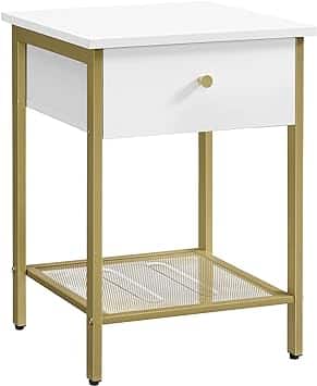 Bullet Point 1 | Scores punten met zijn stijl: kijk naar het eenvoudige wit, het prachtige goud en de verfijnde roosterplank.Je zult dol zijn op het elegante ontwerp.Je zult geweldig dromen met dit chique nachtkastje!Welterusten |